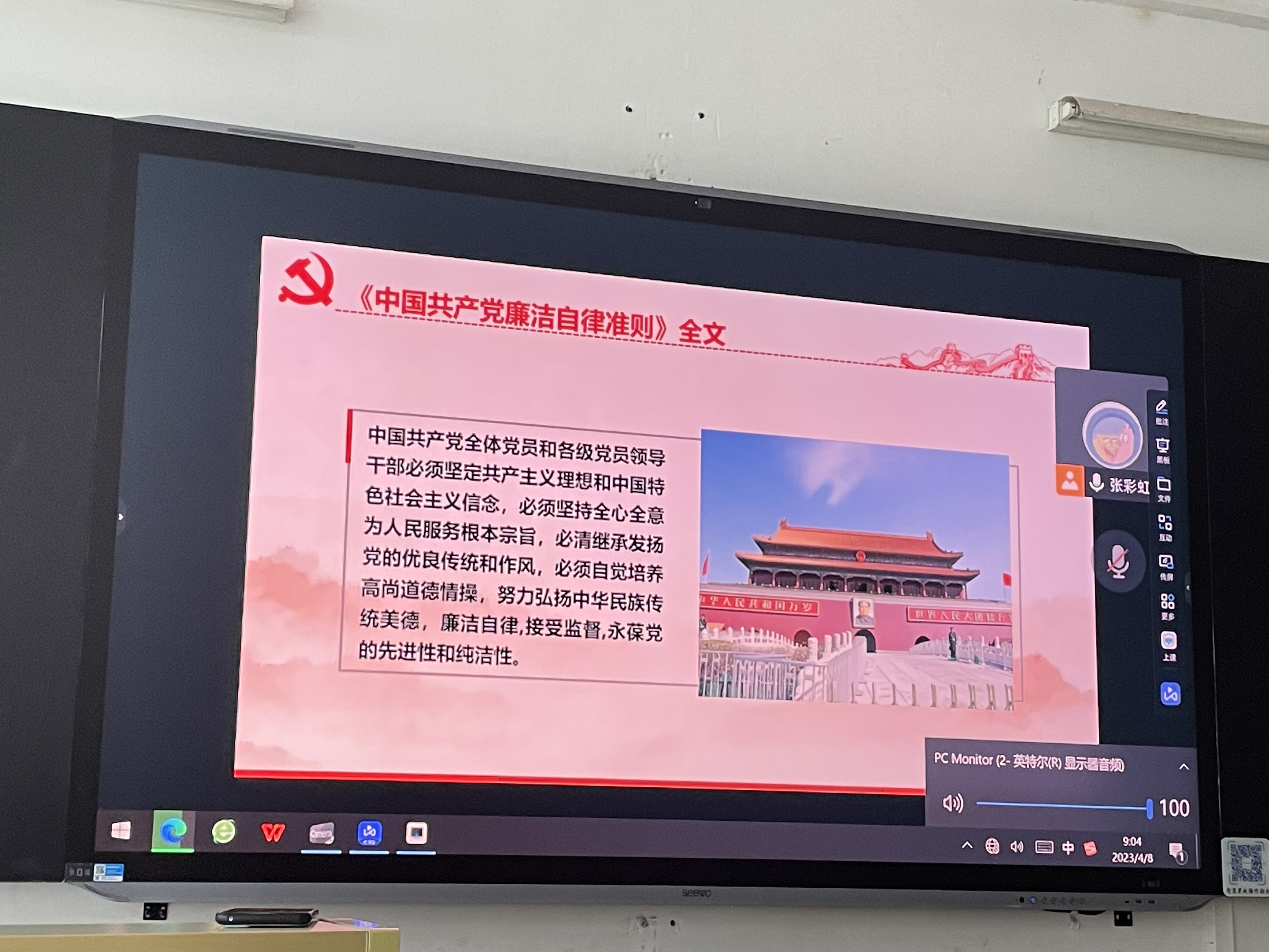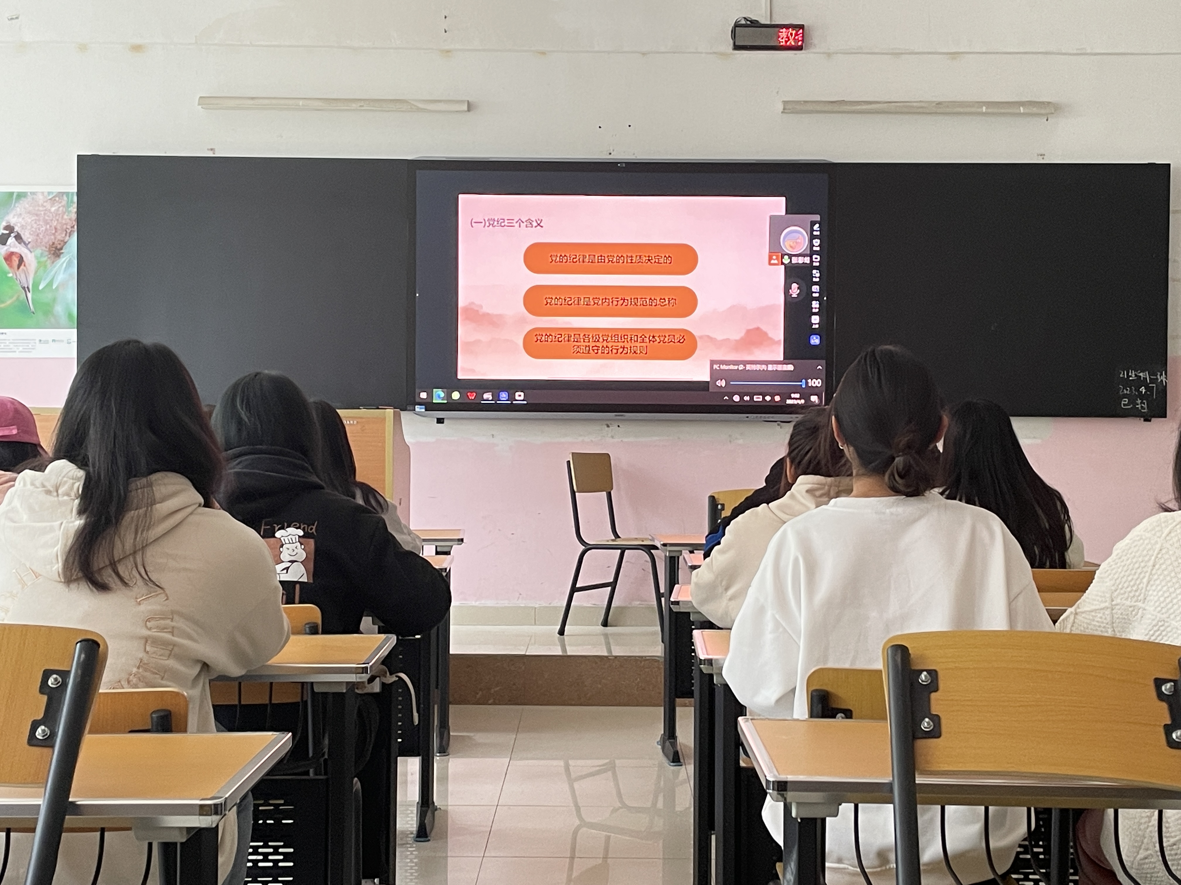 2023年4月8日星期六早上 9:00-10:00,威廉williamhill体育应用生物科学专业员工党支部于致远楼512教室召开“党的纪律:重点学习《中国共产党廉洁自律准则》《中国共产党纪律处分条例》等内容”专题讲座,该讲座由张彩虹同志通过网上会议进行讲解。该支部全体入党积极分子参与此次议会。