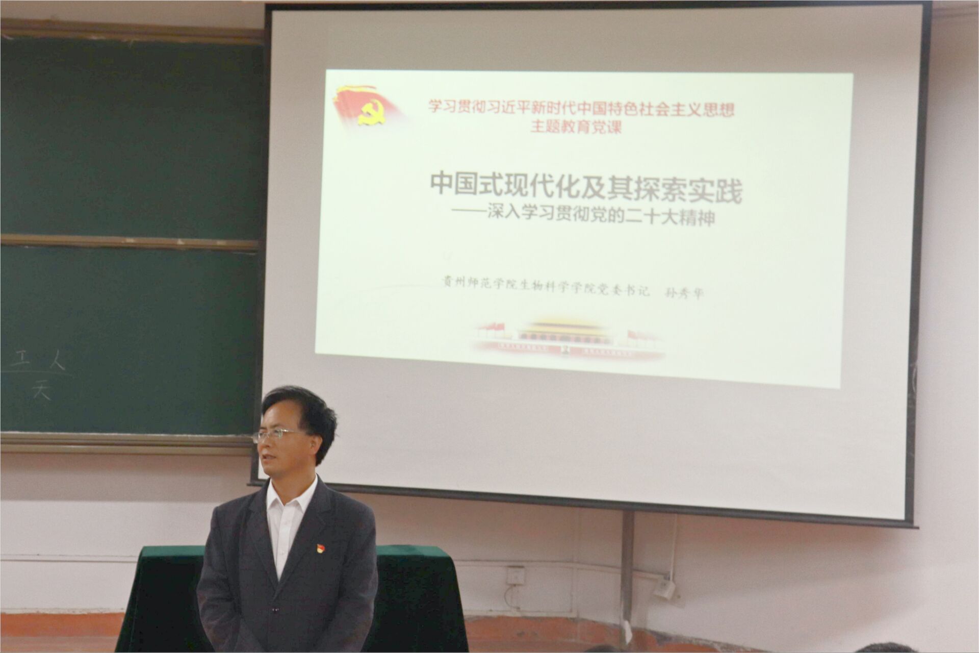 5月11日中午,孙秀华进行以“中国式现代化及其探索实践”为题的培训。孙秀华宣讲党的二十大报告内容,向同学们讲解了中国式现代化道路的四个演进历程。并且从历史、实践、发展和价值四个维度向同学们讲解了中国式现代化的重大意义。