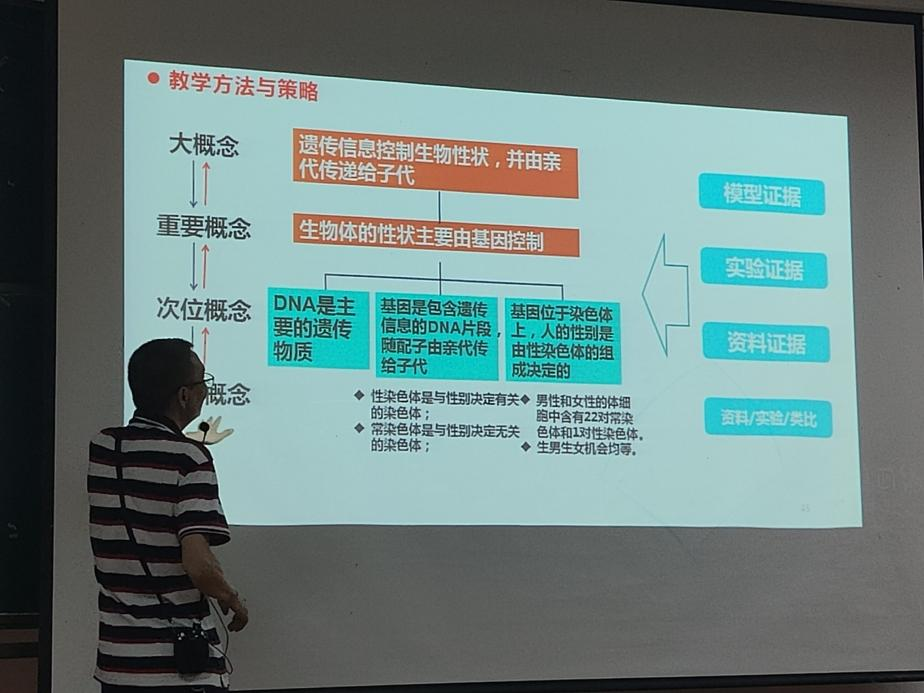 孙少云老师首先结合新课标提出的核心素养的四个维度,列举多个案例深度解读高中生物教材如何渗透、呈现和落实生物学科核心素养;然后以两节具体的教学设计案例“合理营养与食品安全”和“人的性别遗传”,带领同学们深度分析课标、分析教材和教学重难点及处理方法、教学流程以及教师板书技巧等;最后孙少云老师强调,教师在解读教材和进行教学设计过程中要综合考虑如何能与教师教得有效,员工要学得愉快、考得满意这三个因素紧密结合起来。