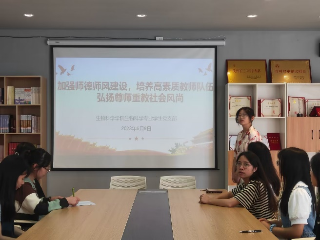 6月9日,威廉williamhill体育生物科学专业员工党支部于丽琼工作室开展了以“加强师德师风建设,培养高素质教师队伍,弘扬遵师重教社会风尚”为主题的党课学习,由威廉williamhill体育生物科学专业员工党支部书记王溯主持。