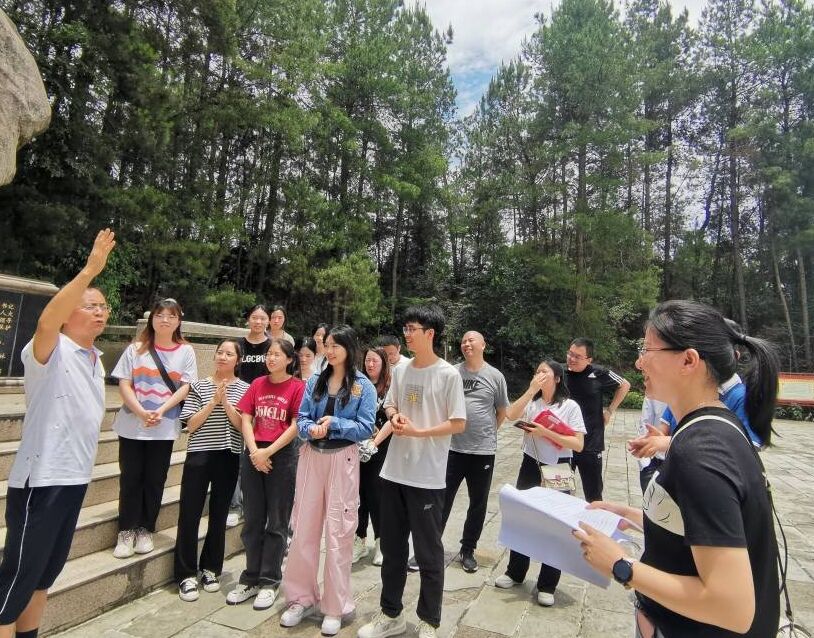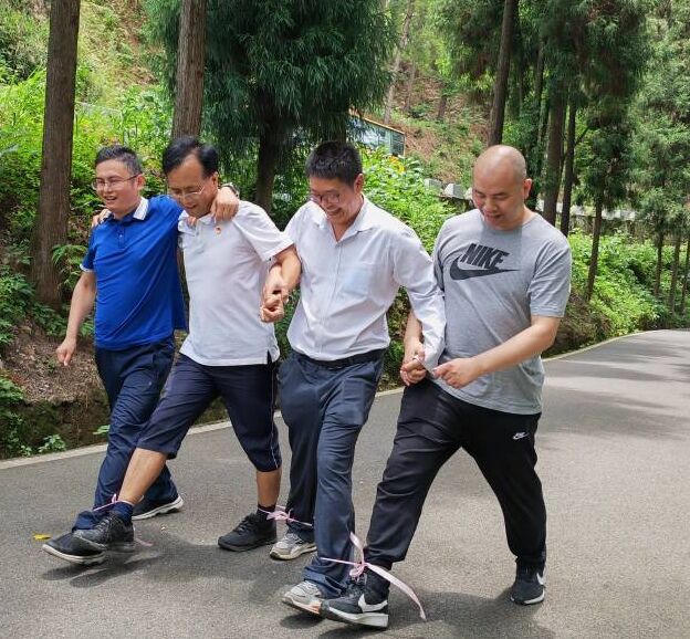 参观结束后,开展了学习二十大知识竞答活动,活动中老师们积极抢答,充分展现了扎实的知识储备和显著的学习效果。最后,开展了“五人四足”团体活动,在各组成员积极配合以及响亮的口号声中,经过激烈角逐,最终教师队获得了第一名。
