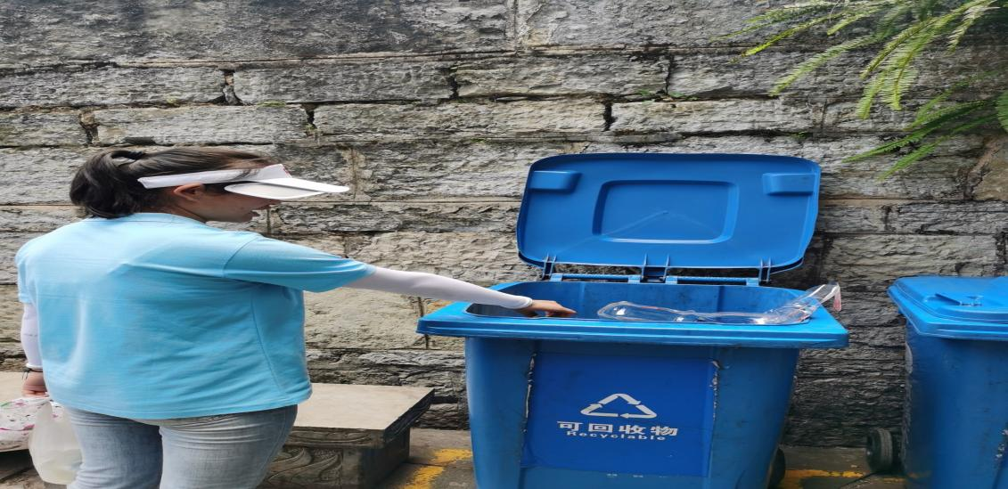 除了问答形式,队员们还生动地向游客演示和介绍了垃圾分类的意义、生活垃圾分类的模式及常见的生活垃圾分类的标识等基本知识。“蓝色可回收,绿色厨余,红色有害,黑色是其他”。大家根据简单易懂的顺口溜进一步加强垃圾分类意识,使垃圾分类真正融入日常生活中。