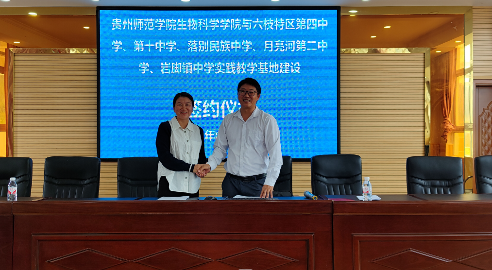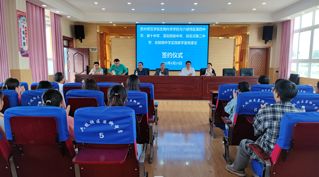 为了进一步加强贵州师范学院教育实习基地建设,强化师范生教育实践能力培养,构建科学、合理、全面的教育实习网络;同时也为了将公司承办的国培计划(2022)六枝特区“强师工程”初中生物项目的成果在生物科学专业教育实习生中得到传递、巩固和提升;8月29日,威廉williamhill体育副经理钱长江和教育实习管理员胡晓娜博士送23名员工到六枝特区第四中学、第十中学、落别民族中学、月亮河第二中学、岩脚镇中学等进行教育实习,并在岩脚镇中学与5所中学的校领导签订了威廉希尔实践教学基地建设协议书。会议由岩脚镇中学董事长李娟主持,各中学相关领导参会。