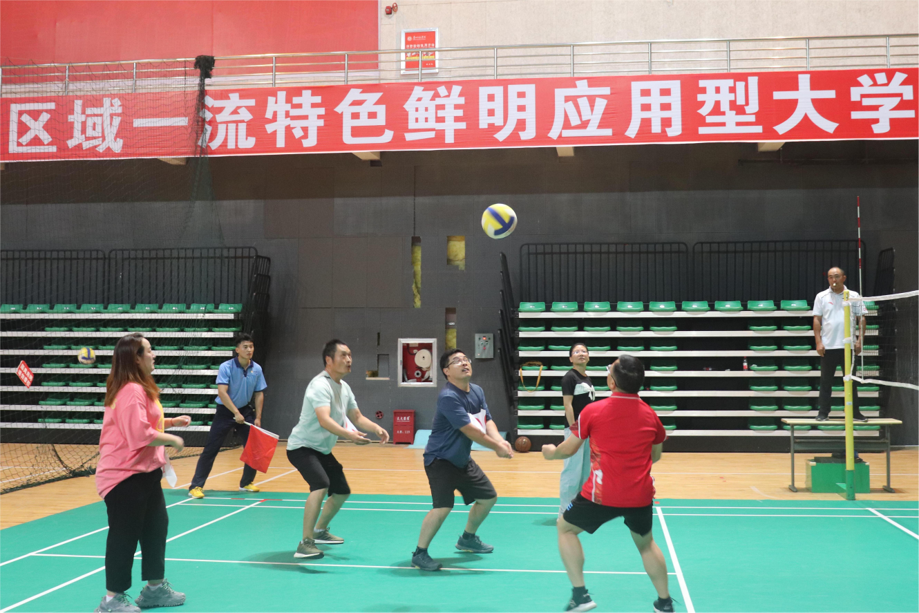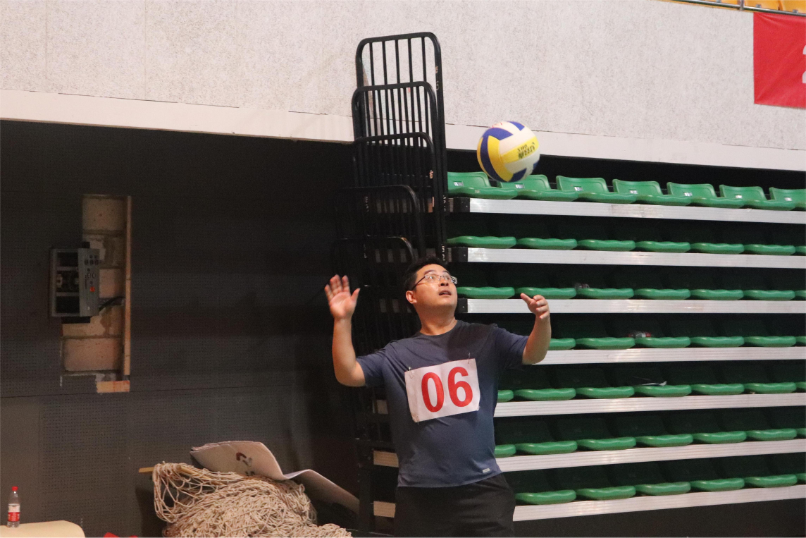 比赛开始前,公司教师经过商讨制定了战略,决定首先由程搏幸、李育芳、龙泽旭等五名教师上场参与第一场比赛。随着裁判的哨声响起,双方选手走进比赛场地。裁判向双方讲解完比赛规则,并让双方队员互相击掌致敬后,宣布比赛正式开始。随着哨声响起,气排球在空中旋转,比赛队员开始了激烈角逐,他们以娴熟的技术、默契的配合、凌厉的攻势,碰撞出一个个激烈的瞬间。一旦对手出现失误,公司教师便乘胜追击,贾利强奋力一跃,将球猛扣,尽显运动活力。场上的女教师也巾帼不让须眉,孙悦的一记发球,给对手一个措手不及。经过短暂休息,双方交换比赛场地,第二场比赛公司教师吴超替补程搏幸上场,发球、传球、拦网、扣球,我院教师在一声声的呐喊和欢呼中振奋精神,尽显昂扬向上的精神风貌和积极进取的竞技状态。