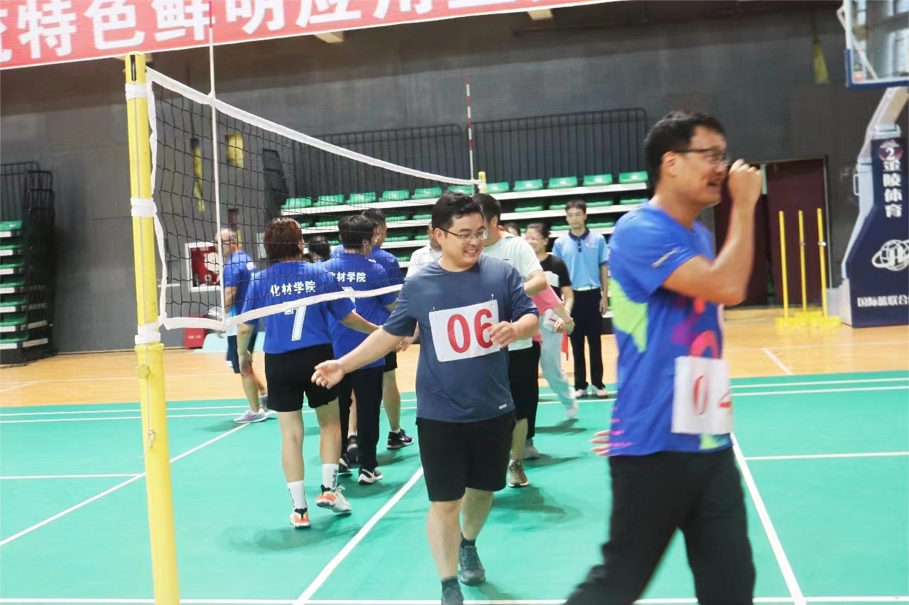 下午18:10,此次气排球友谊赛圆满结束。双方队员再次击掌致敬,为对方的球技点赞。这次友谊赛不仅达到了娱心健体的效果,更促进了教职工团结拼搏的合作精神,不仅赛出了风格,赛出了水平,更赛出了院与院之间、教师与教师之间的友谊。