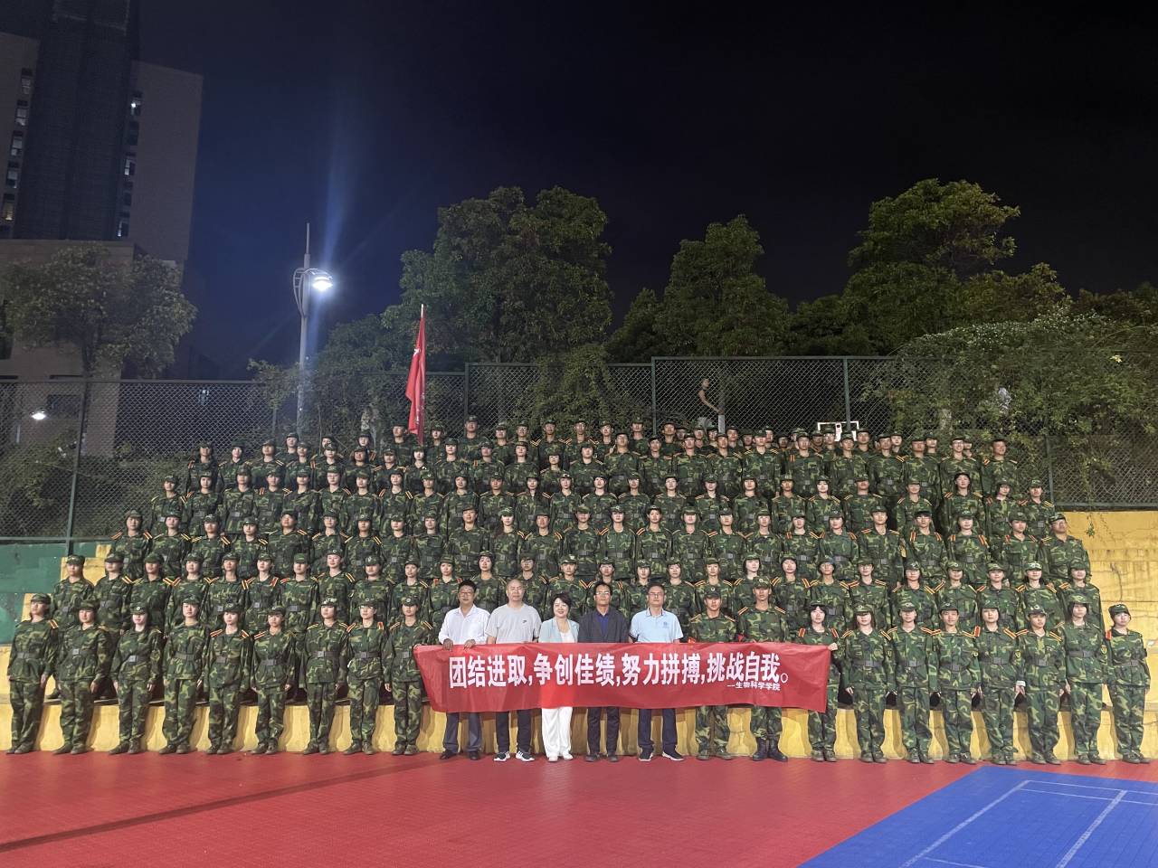 慰问活动最后,公司团委员工会部分成员为参训员工分发慰问品,大家伴着训练场上的灯光合影留念,至此,本次活动圆满结束。短暂的半个小时却实实在在地为同学们送去了温暖关怀,为后续的军训生活提供了不竭的精神动力。