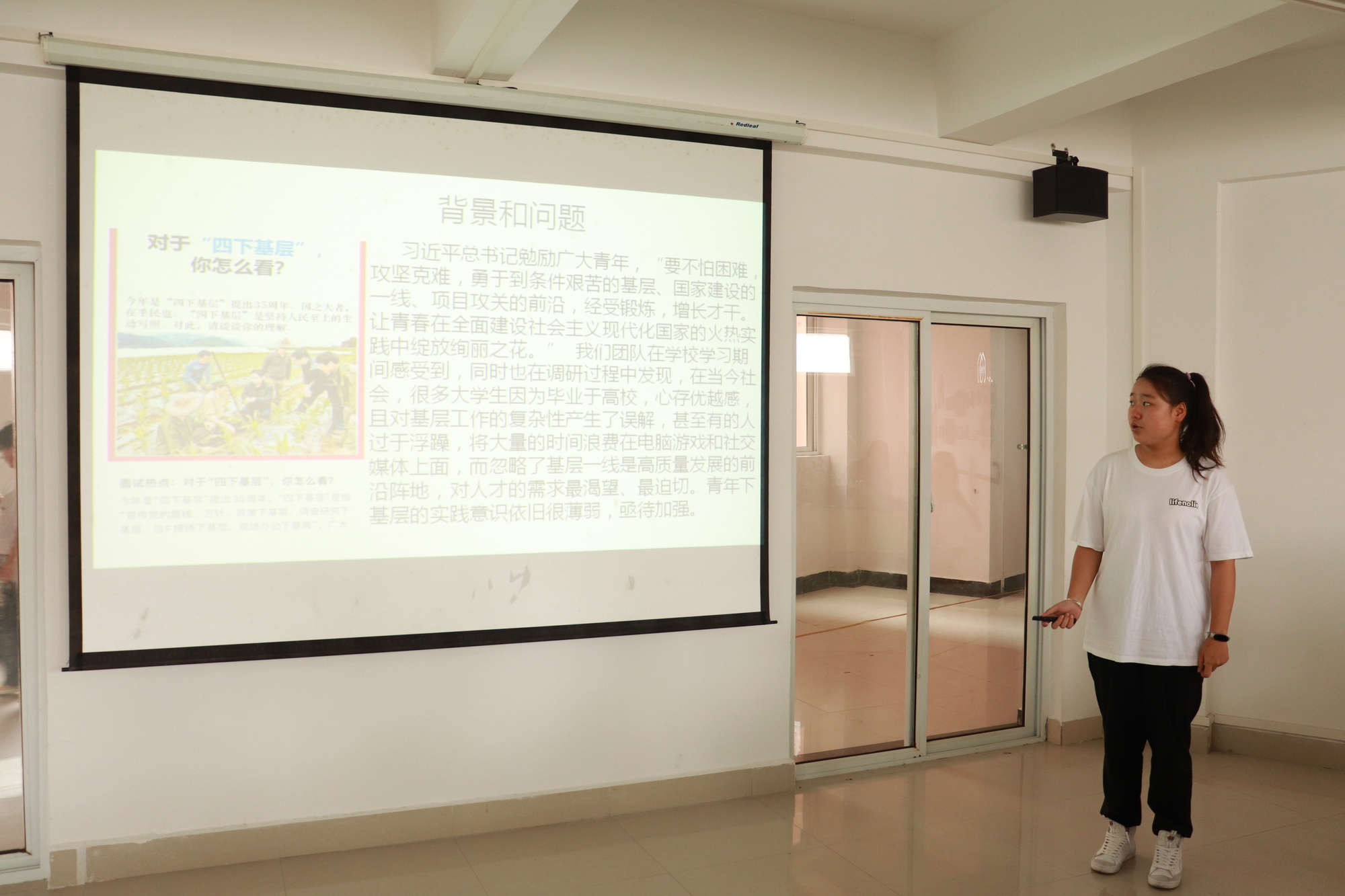 在主持人宣读比赛规则、评分细则后进入了现场展示环节,选手们围绕公司关心、员工关切、社会关注和个人研究关联的选题,积极建言献策,提出了很多有价值、有意义的“提案”,他们分别从关爱留守儿童、高校书法普及、女性安全与健康、新高考选课与大学专业衔接等内容提出各自的建议。现场评委从选题背景、可实施性等方面进行了专业点评,指出每个队伍的优劣所在。经过激烈的角逐,最终22级应用生物科学班“关于增强新青年对基层实践工作的认识—关心关爱留守儿童”提案通过初赛,晋级校赛。
