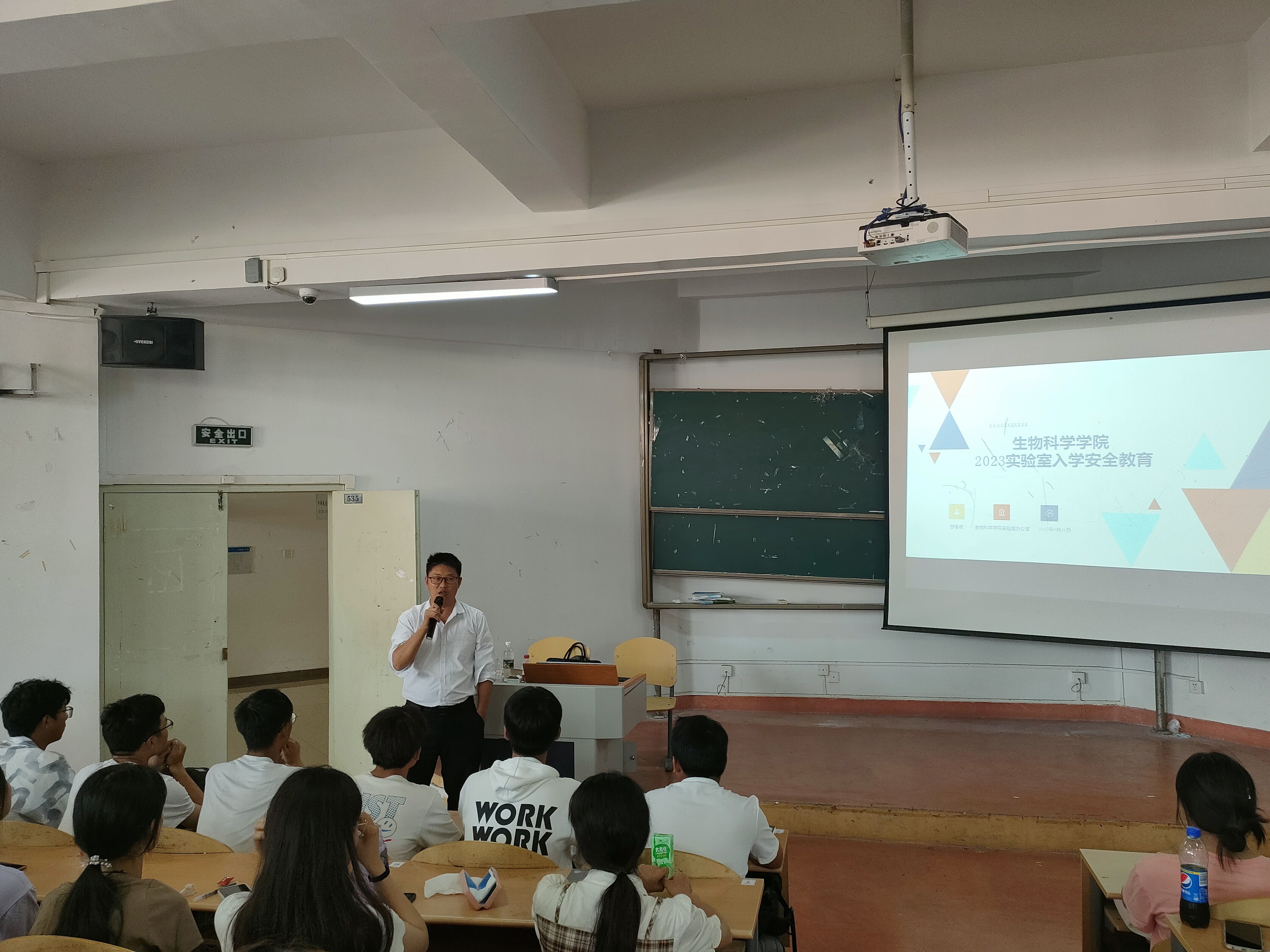 为了切实做好实验室安全工作,进一步提高实验人员的安全意识,保护师生的人身安全,加强员工对实验室安全的认知,9月18日,威廉williamhill体育在宁静楼535进行了新生实验室安全培训。公司党委委员、副经理钱长江出席培训会,实验室管理老师罗秦欢主持并讲解实验室安全知识,实验室助理、2023级各班班助及全体新生参加培训。