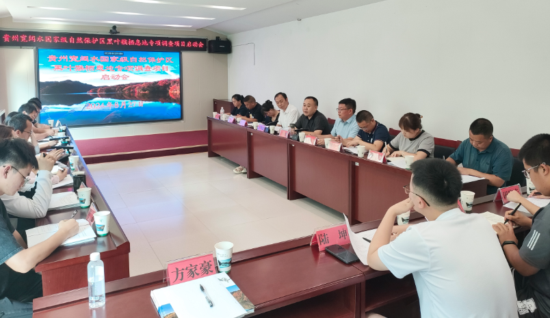 仪式上,宽阔水保护区局长兰洪波介绍了保护区的基本状况,着重介绍了黑叶猴的保护研究工作,指出黑叶猴栖息地调查研究对保护管理决策的重要意义。卢泽洋处长代表项目牵头单位介绍了项目参与人员、并表达了保质保量按时完成项目的决心,钱长江副经理代表项目参与单位表示将为保障项目野外调查工作的顺利实施积极协调人力物力,龙泽旭博士介绍了项目实施方案。与会的其他成员都从自己的研究、保护、管理角度进行了交流发言。最后,孙贵红调研员做了总结讲话,强调了项目实施过程的安全保障及质量要求等。