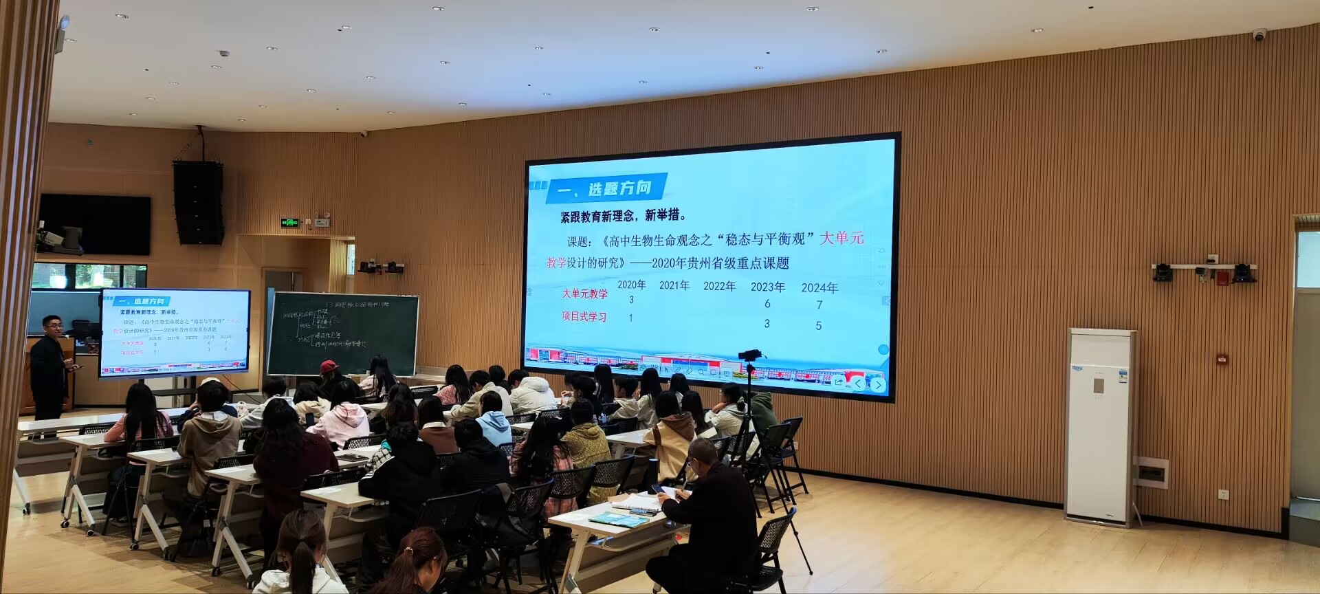 课后,在场的老师对两位老师的授课进行了点评。高度肯定了吴老师和谢老师在专业领域的深厚功底和教学方面的创新精神,认为他们的课堂不仅传授了知识,更培养了同学们的思维能力和探索精神。紧接着,黔东南州骨干教师、凯里一中的高级生物教师龙强老师为同学们带来了一场题为《课题申报常见问题及解决措施》的专题讲座。龙老师结合自己丰富的课题申报经验,详细讲解了课题申报过程中的主要注意事项,并分享了贵州省内一些优秀的课题案例。他的讲解不仅让同学们对课题申报有了更加清晰的认识,更为今后的学术研究指明了方向。最后,孙少云老师分享了他多年以来的教学经验。他结合自己在教学设计和课堂讲课中的实践,为大家传授了一些实用的教学技巧。