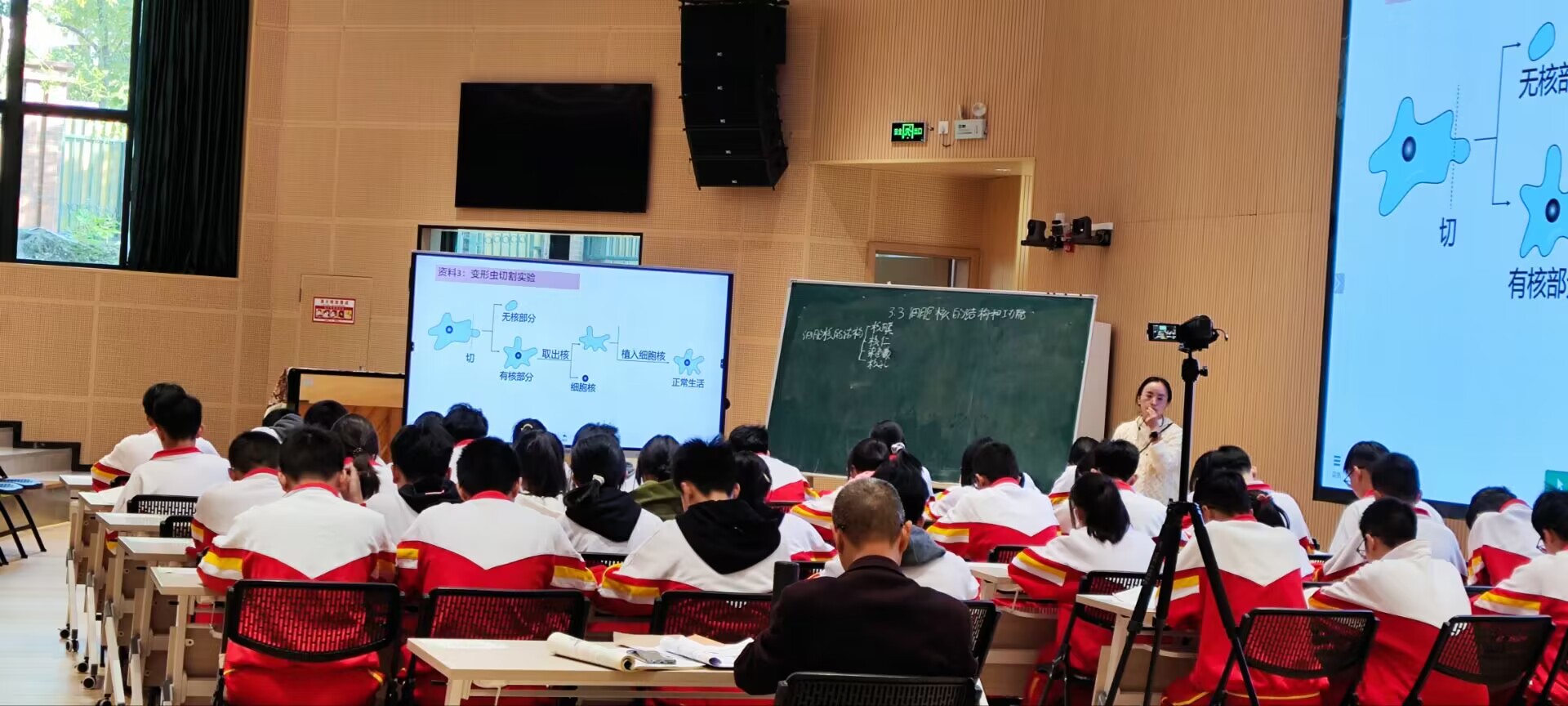 10月31日上午,威廉williamhill体育彭雪梅博士带领2023级生物科学班51名同学去乐湾国际实验公司参加“贵阳市高中生物学科带头人工作站教学研讨活动”。本次活动的主题是“细胞核——系统的控制中心”的同课异构。活动由贵阳市生物学科带头人工作站长、贵州省特级教师、贵州省名教师乌当中学孙少云老师主持,首先由乌当中学的吴榕姣老师和乐湾国际实验公司的谢莉老师带领同学们进入精彩的同课异构课堂,吴老师以其深入浅出的讲解方式,将细胞核的复杂结构逐一剖析,并通过生动的实例,使同学们对细胞核的功能有了更加直观的理解;而谢老师则运用丰富的多媒体资料和前沿的科研成果,引导同学们深入探讨细胞核在细胞生命活动中的重要地位。两位老师各具特色的教学方法,不仅让同学们对课程内容有了全面的掌握,更激发了他们对生物科学的浓厚兴趣。