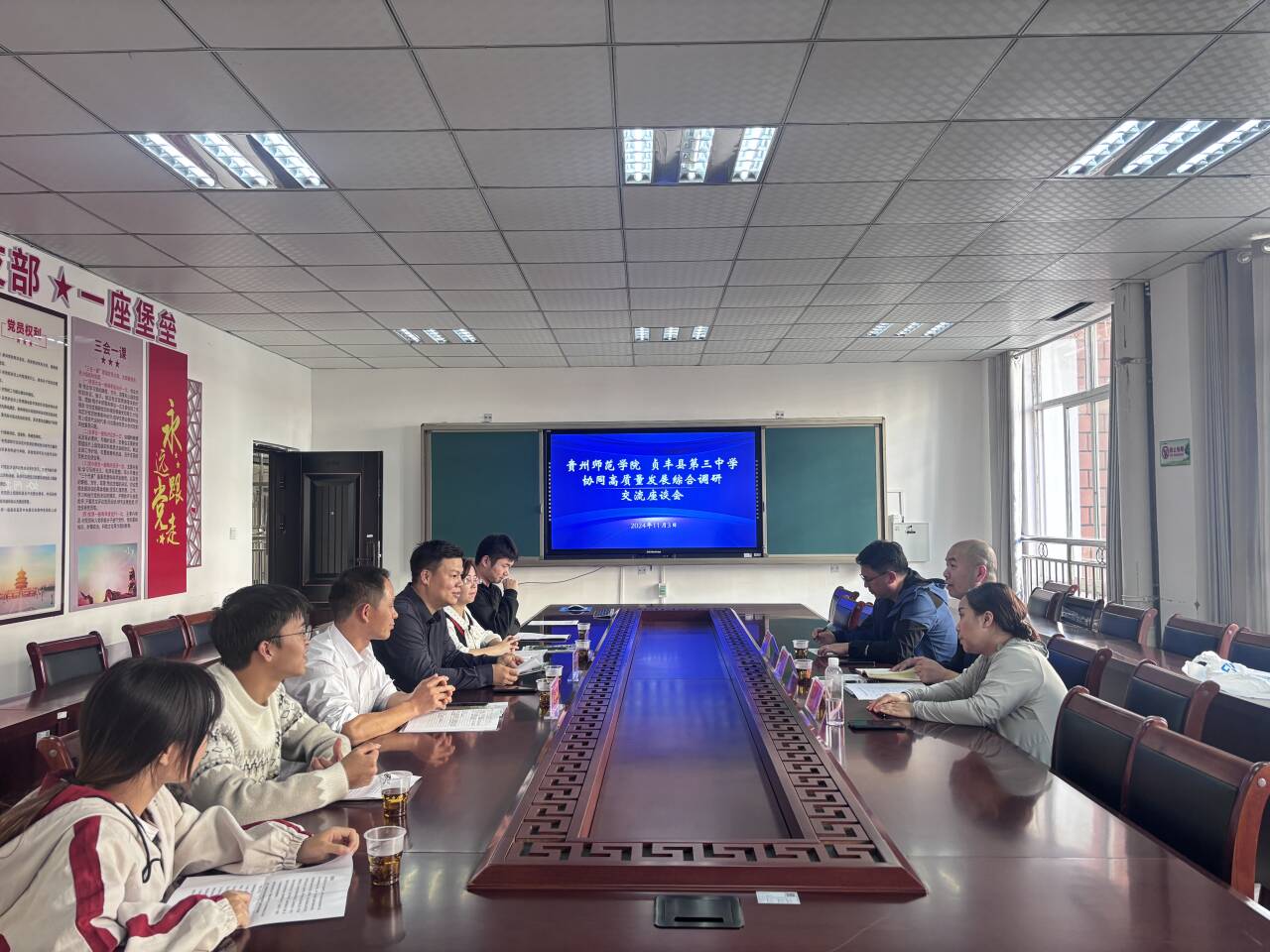 11月13-14日,威廉williamhill体育副经理孟泽彬、教师廖兴刚、杨燕赴贞丰县第三中学、兴义市赛文高级中学和兴义市第五中学,开展2022级生物科学专业员工教育实习巡视、访企拓岗、生物竞赛教练员培训训后调研和优质生源基地挂牌等活动。
