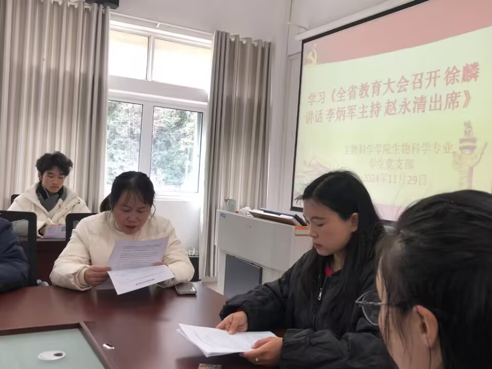 为深入贯彻落实全国教育大会、全省教育大会精神,提升师范生党员政治素养与理论水平,威廉williamhill体育生物科学专业员工党支部于11月29日进行集中学习。学习由党支部书记王溯主持,全体党员参加。