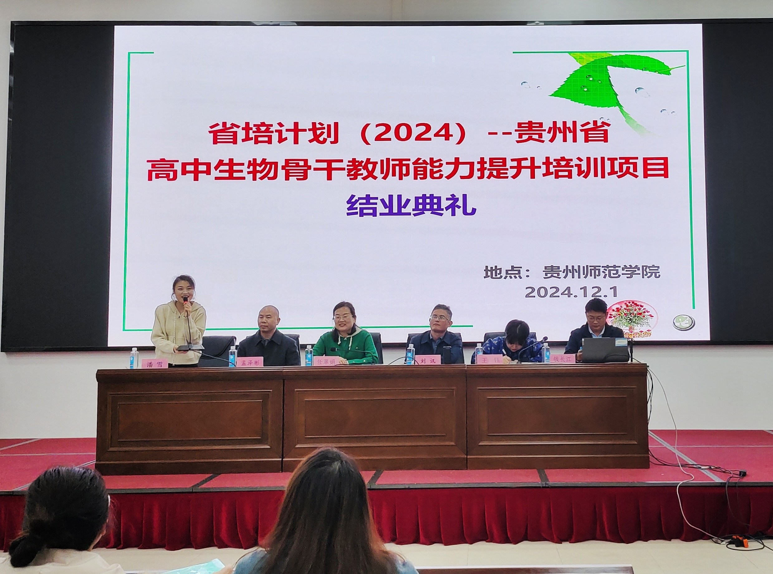 参训教师潘雪作为学员代表发言,分享了培训学习心得,对培训内容和组织表示满意,并承诺将在教学中应用所学,助力提升贵州省高中生物教学质量。她认为培训增强了她的专业技能和对教育的热情,学习了新教学理念和方法,并与其他教师建立了良好关系。