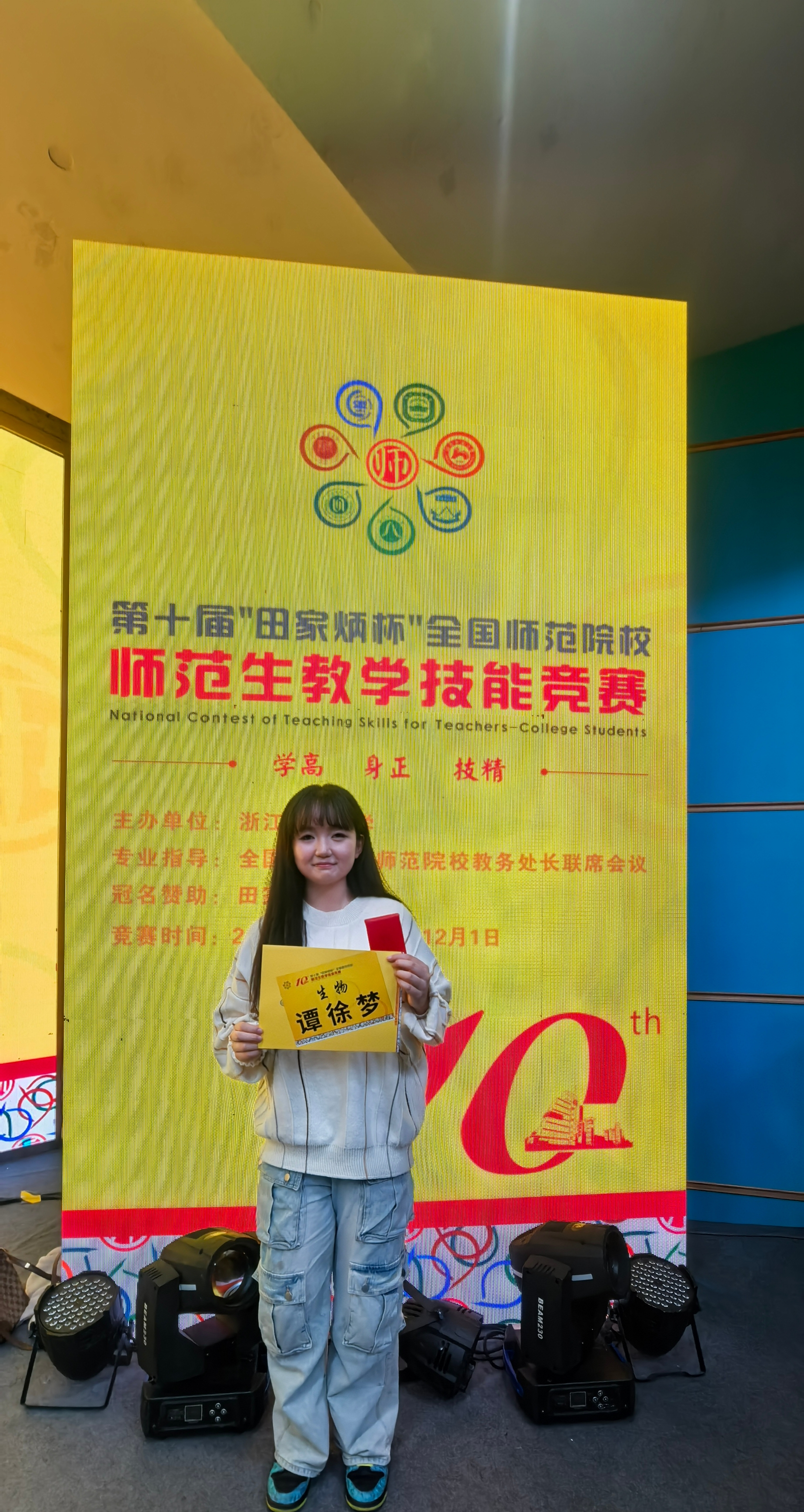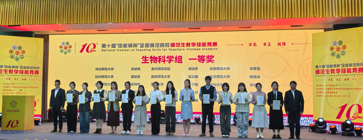 11月29日-12月1日,第十届“田家炳杯”全国师范院校师范生教学技能竞赛决赛在浙江师范大学举行。威廉williamhill体育武燕老师带领2022级生物科学专业员工谭徐梦参加了此次竞赛。此次比赛经过来自250所公司的1831名选手参加网络初赛评审后,共有来自155所院校11个学科的509名选手到现场参加决赛,决赛采取员工现场抽签方式,不指定教材和章节,覆盖高中生物必修和选择性必修的全部内容。谭徐梦在44名参加决赛的生物组选手中表现出色,斩获一等奖,实现在此项赛事中获得生物组教学技能竞赛国赛一等奖零的突破。
