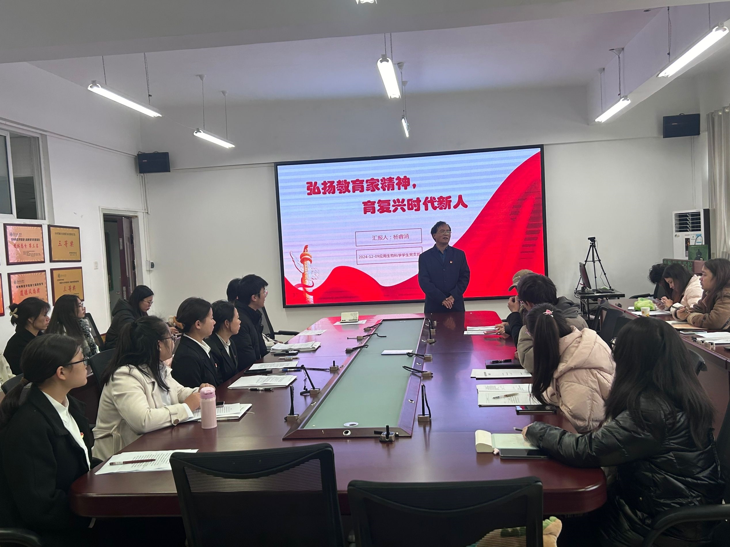 首先由杨睿涵同学带领全体党员深入学习教育家精神内涵,从四个方面展开详细讲解。在教育家精神与时代使命方面,阐述了教育家精神如何在当下时代背景下应运而生,以及它所肩负的推动教育进步、社会发展的重大使命。这一精神不仅是教育工作者的思想灯塔,更是指引全体党员为教育事业奉献的行动指南,与时代发展的脉搏紧密相连,激励着党员们在各自的岗位上践行教育初心。