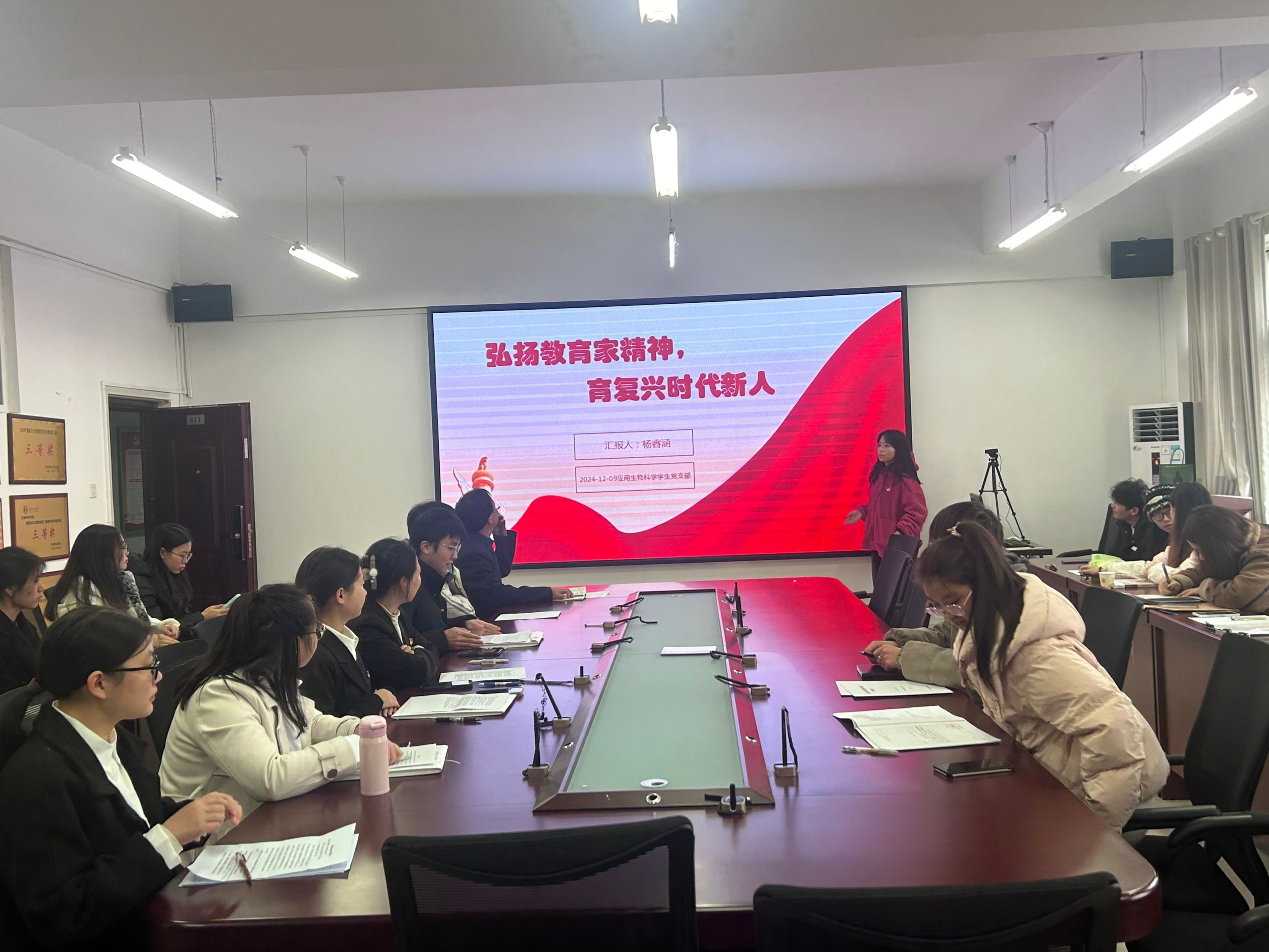 为了激励党员积极探索创新教育模式,为培养具有坚定理想信念、高尚道德情操、扎实学识和仁爱之心的时代新人提供有力保障,从而推动教育事业高质量发展,为实现中华民族伟大复兴的中国梦奠定坚实的人才基础,威廉williamhill体育应用生物科学专业员工党支部于12月9日在宁静楼611开展了“弘扬教育家精神,育复兴时代新人”的主题党日活动。党支部书记孙秀华,支部委员罗倩、丁波、伍林涛老师,全体员工党员共同参与。