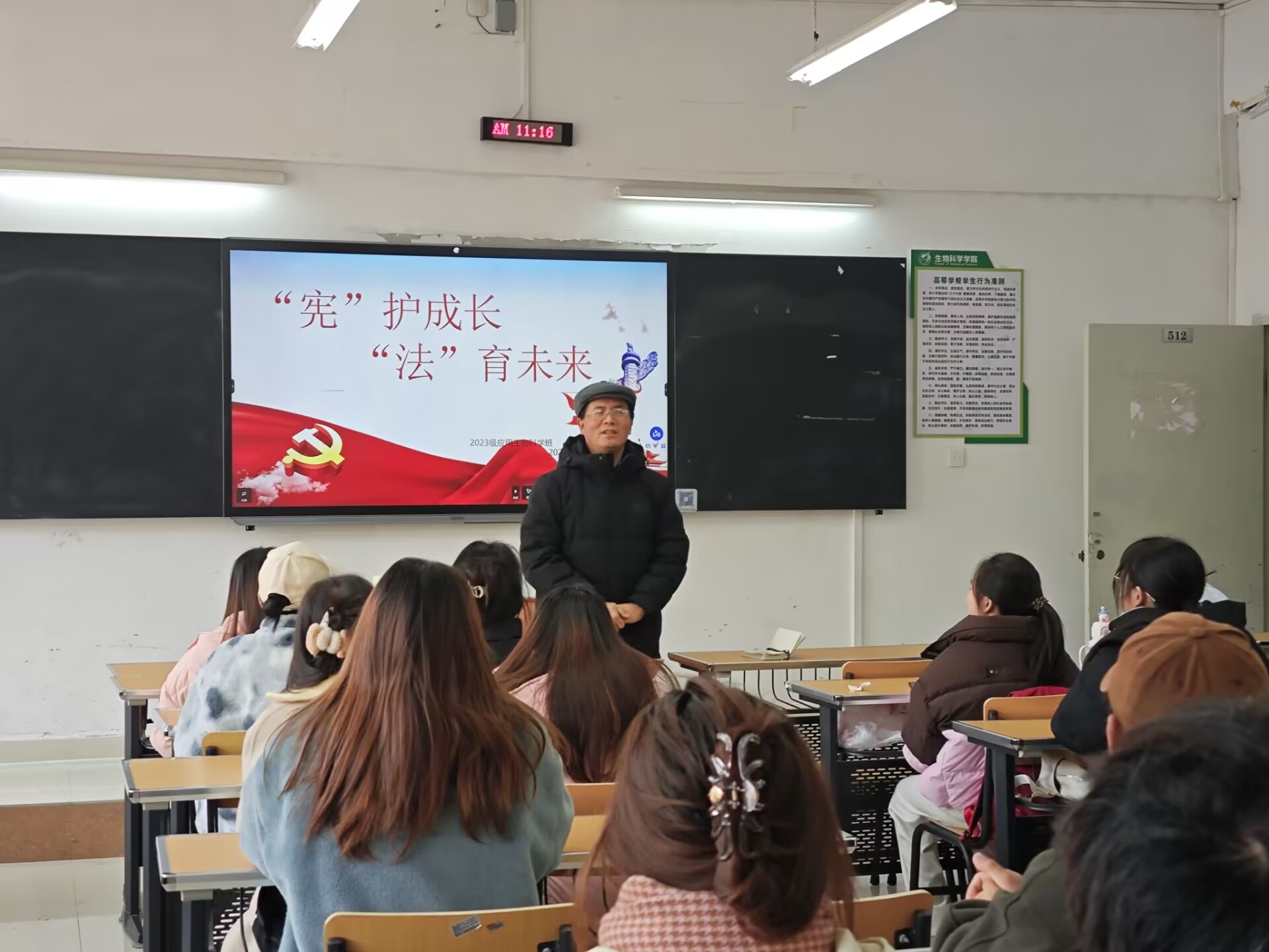 2024年12月13日,2023级应用生物科学班全体成员在致远楼512开展了"宪护成长,法育未来"主题理论学习活动。活动特邀生物科学公司党委书记孙秀华参加。 活动由班级团支书陈发玲主持。