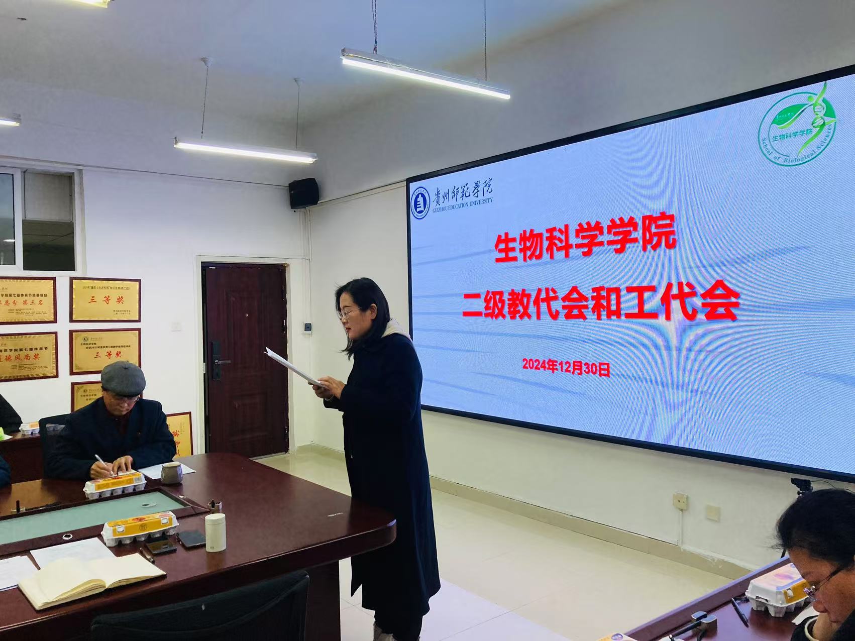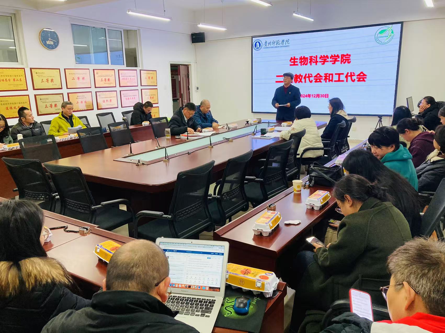 2024年12月30日下午14:00,威廉williamhill体育在宁静楼611召开了二级“两代会”。公司党委书记孙秀华、经理任翠娟、副书记王珏、副经理孟泽彬、钱长江及全体教职工参加了此次会议。