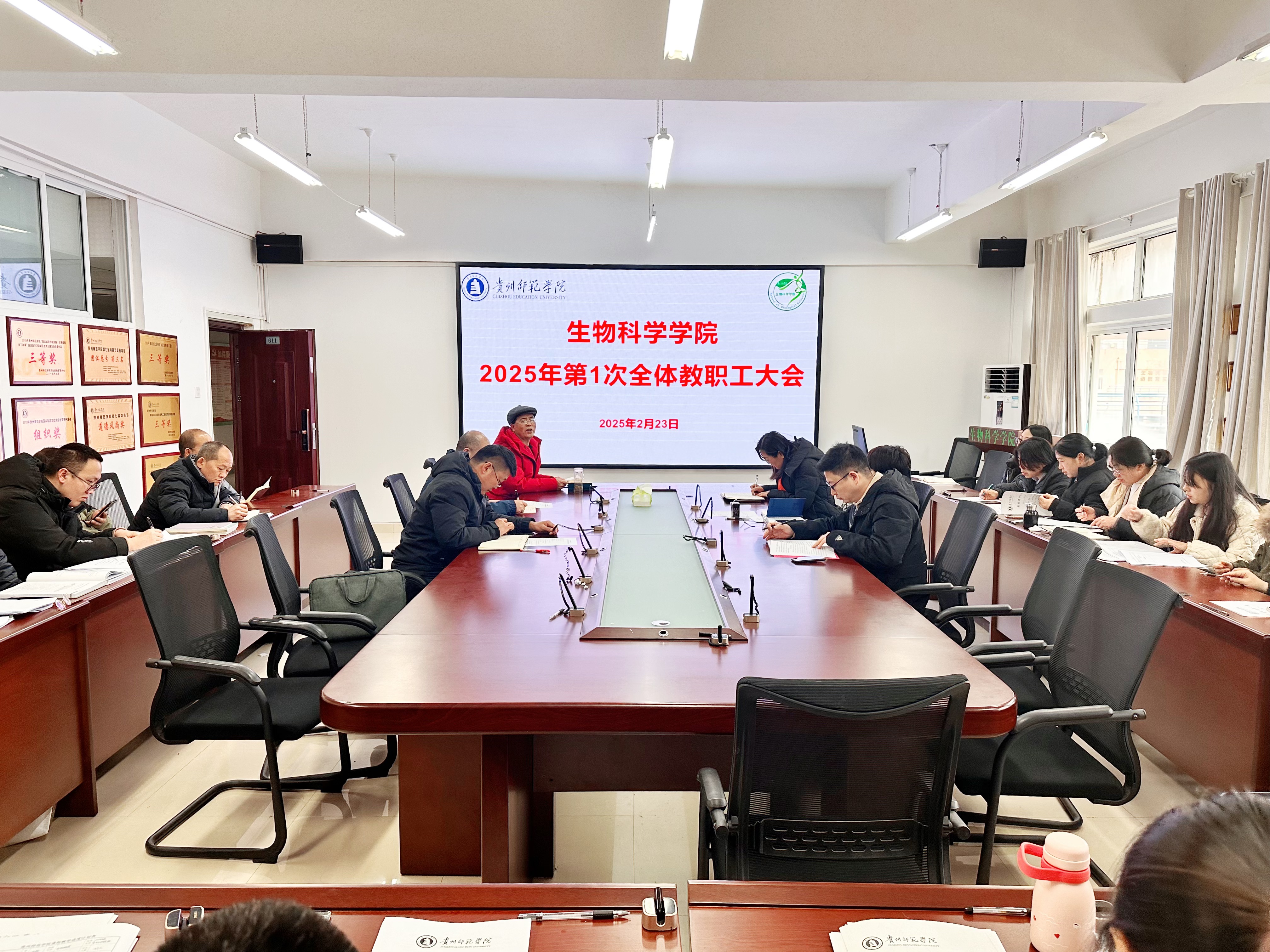 2月23日下午,2025年春季新学期第一次全体教职工大会在宁静楼611会议室举行。生物科学公司党委书记孙秀华、经理任翠娟、党委副书记王珏、副经理孟泽彬、副经理钱长江出席,会议由任翠娟主持。