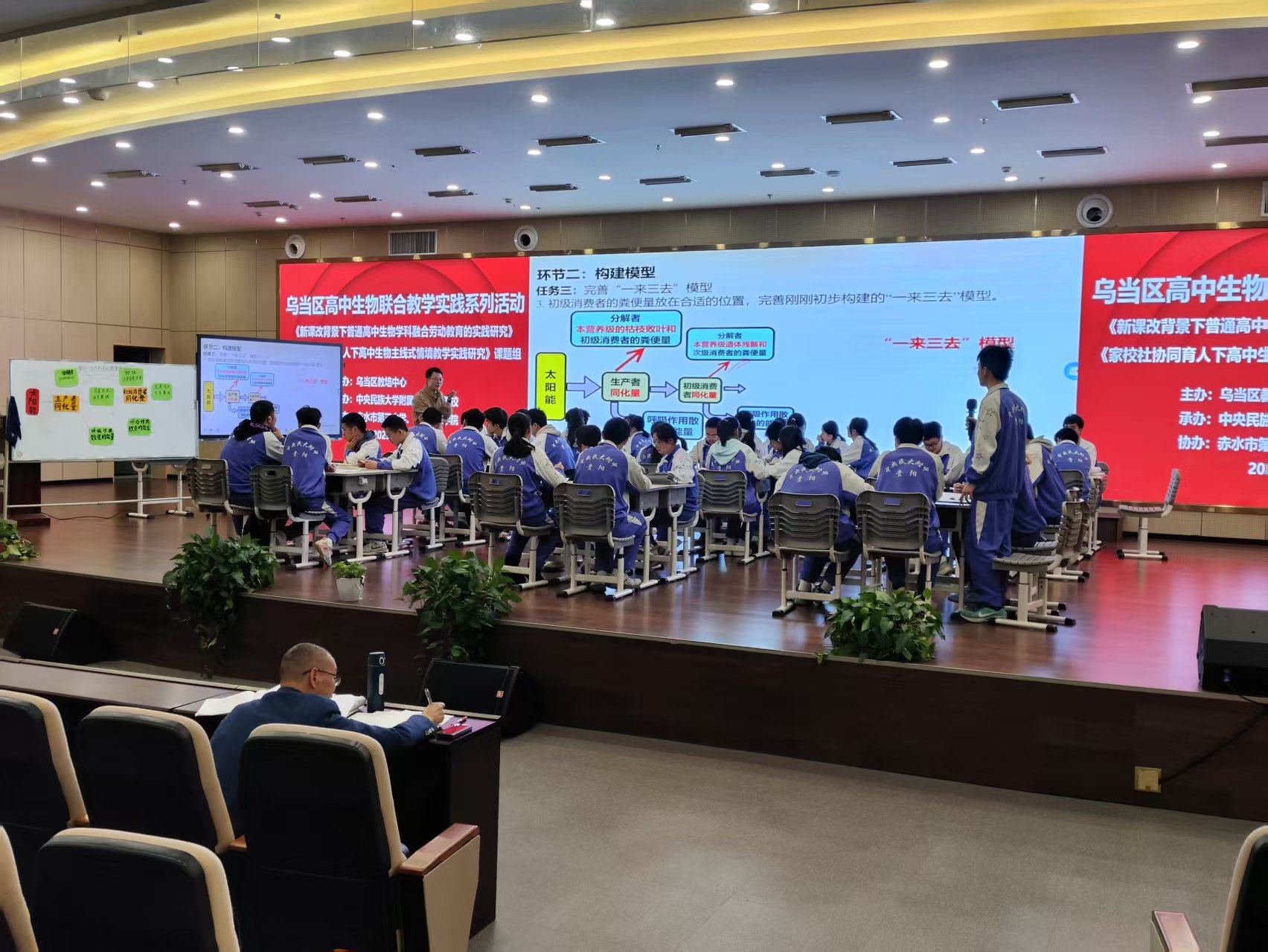 3月27日上午,威廉williamhill体育武燕带老师带领2023级生物科学班51名同学去中央民族大学附属中学贵阳公司参加活动。此次活动是由贵阳市乌当区教培中心主办,中央民族大学附属中学贵阳公司承办,联合赤水市第三中学开展的高中生物《生态系统的能量流动》一轮复习“同课异构”教学研讨活动。