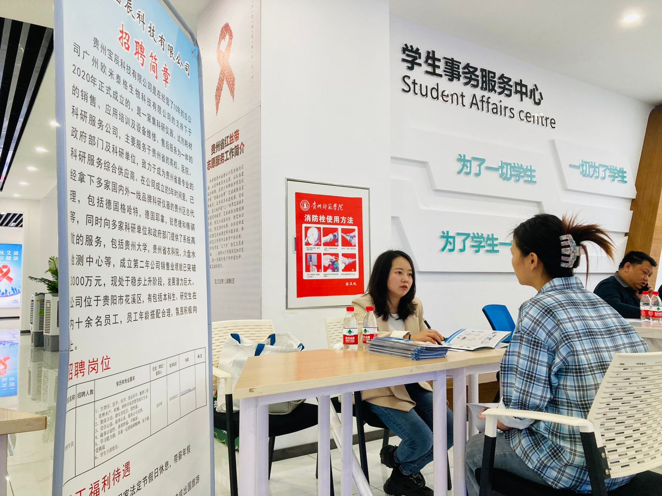 招聘会现场气氛热烈,本次招聘会公司邀请了20余家知名企业到校招聘。六盘水航宇高级中学、贵阳锦黔化工有限公司、贵州乐思达教育咨询有限公司等企业提供了涵盖生物医药、生态环保、食品检测、教育科技等多个领域的就业岗位。毕业生们积极与企业交流,详细了解岗位信息,部分企业设置的现场面试环节促成多名毕业生当场达成就业意向。公司领导走访了各企业展位,并表示公司将持续深化校企合作,为毕业生拓展就业渠道。