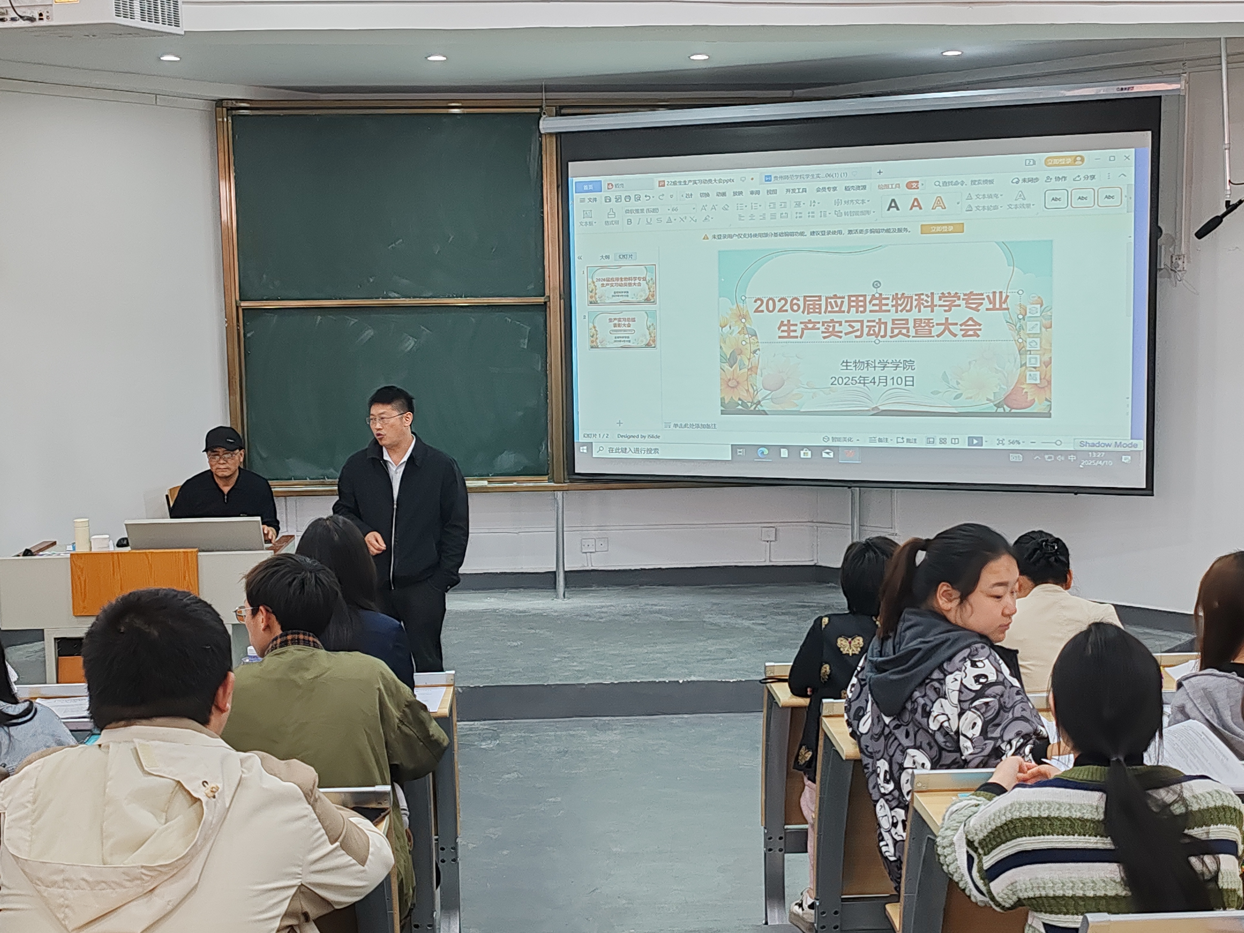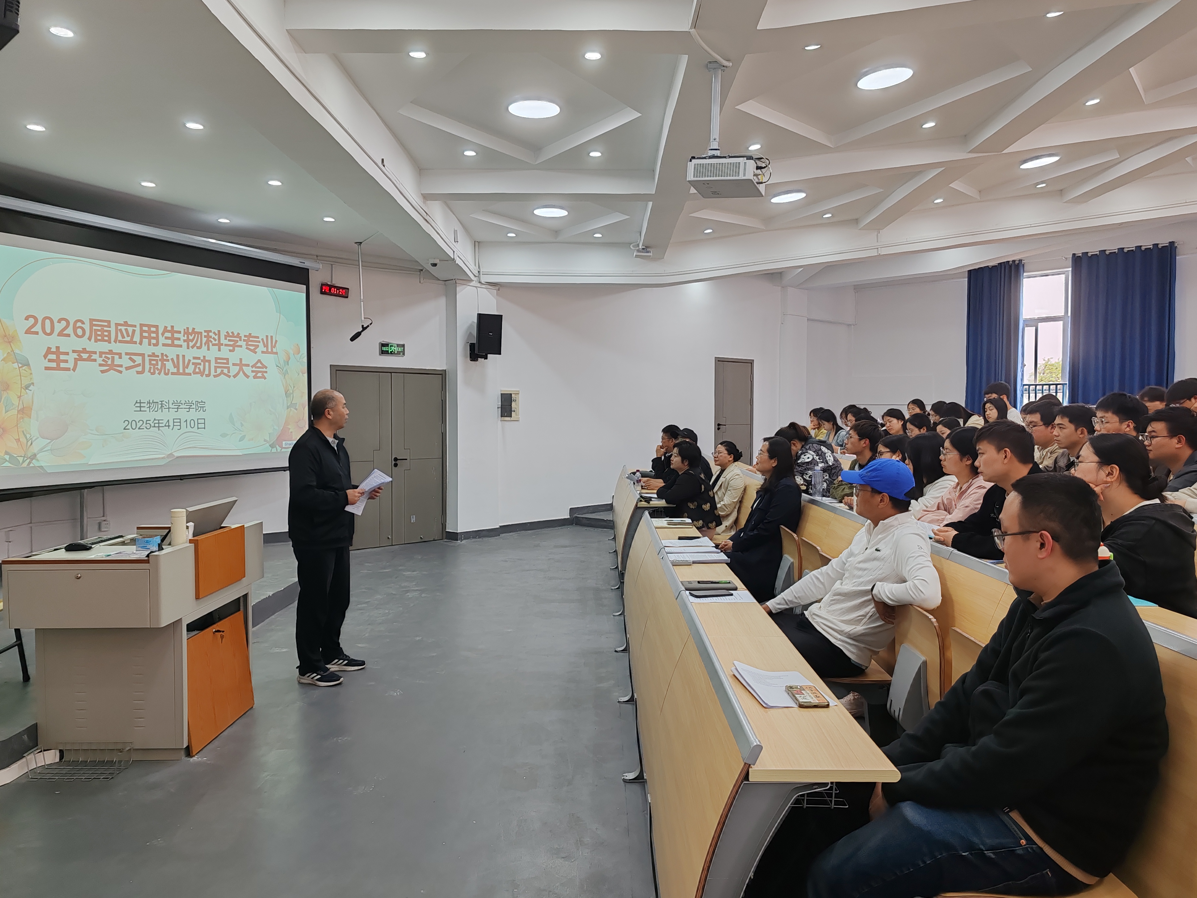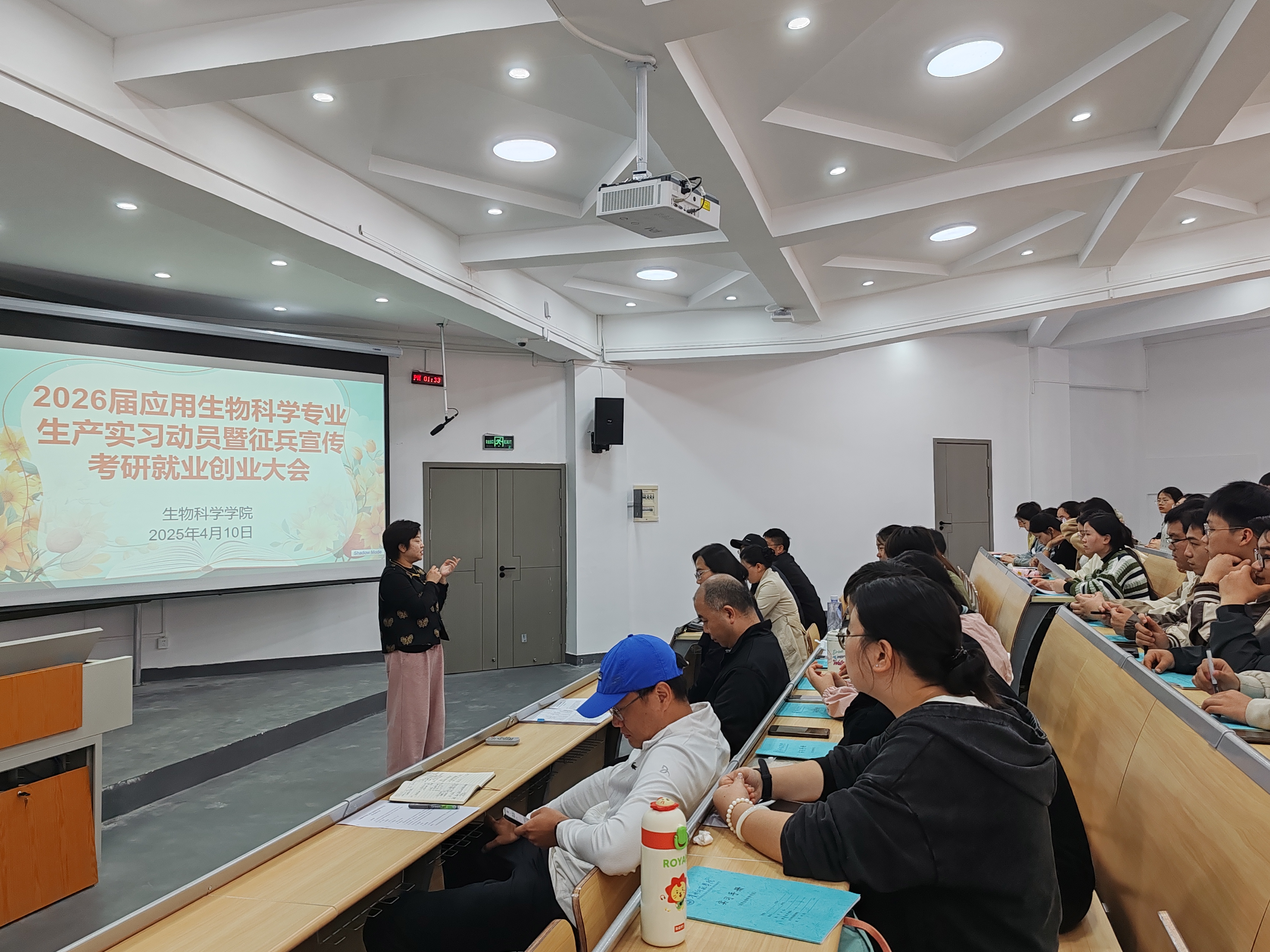 为深化产教融合、落实实践育人理念,进一步推动应用生物科学专业员工理论与实践能力双提升,威廉williamhill体育于4月10日在宁静楼537教室召开了2026届应用生物科学专业生产实习动员总结暨征兵宣传考研就业创业大会。参加会议的有公司党委书记孙秀华、经理兼党委副书记任翠娟、党委副书记王珏、副经理钱长江、副经理孟泽彬、系主任程搏幸、辅导员李育芳、生产实习兼职管理员陈运泽、员工导师彭雪梅、员工导师兰世超、2022级应用生物科学专业全体同学及2021级应用生物科学专业员工代表,会议由陈运泽主持。