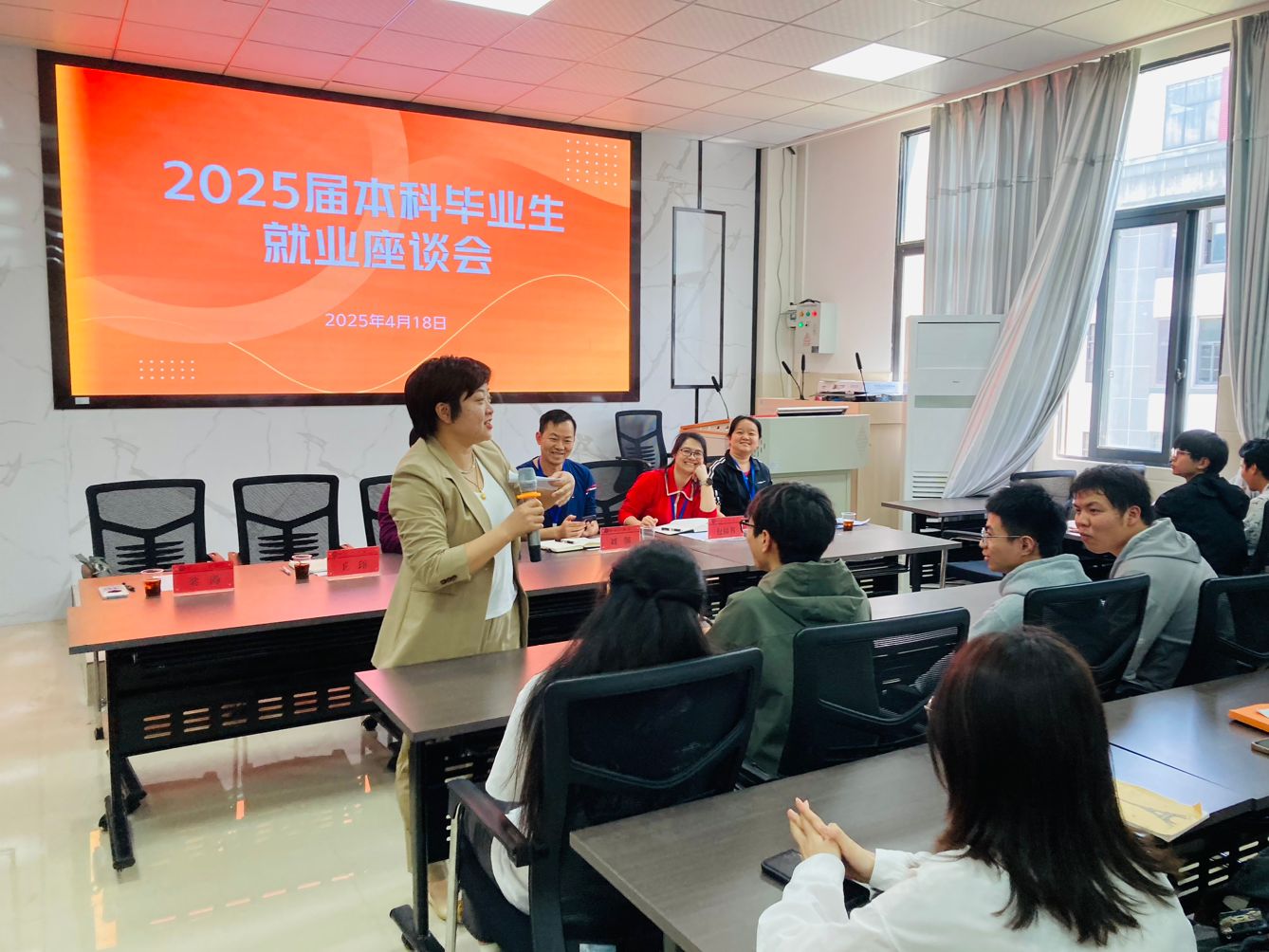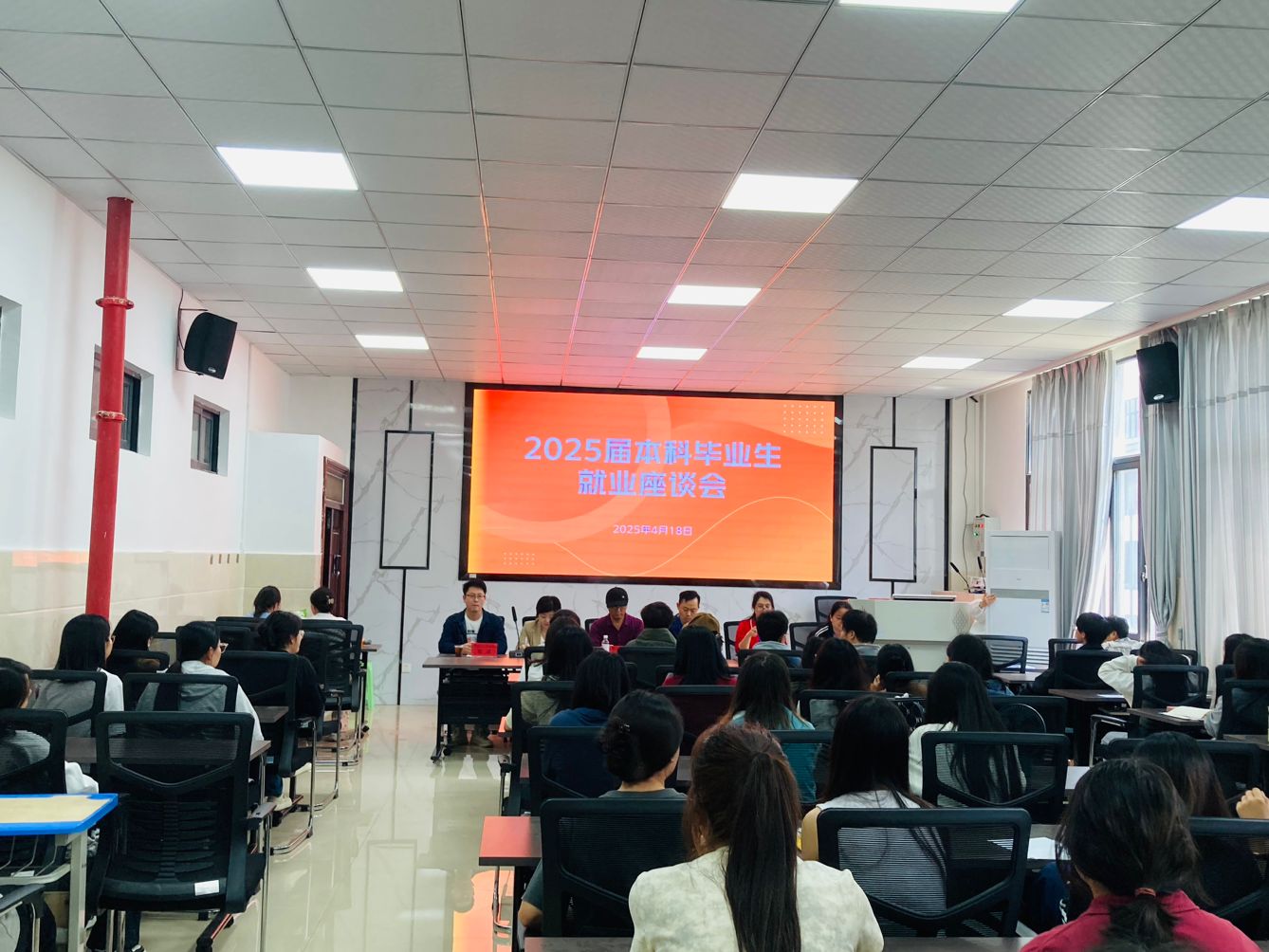 4月18日,生物科学公司党委书记孙秀华、党委副书记王珏、毕业班班主任梁涛一行到贵州农业职业公司清镇校区开展联合培养就业育人工作交流。贵州农业职业公司农艺系党总支书记刘锡、系主任包福书、团总支书记罗小燕,以及2025届应用生物科学专业联合培养毕业生120余人参加了交流会,会议由包福书主持。