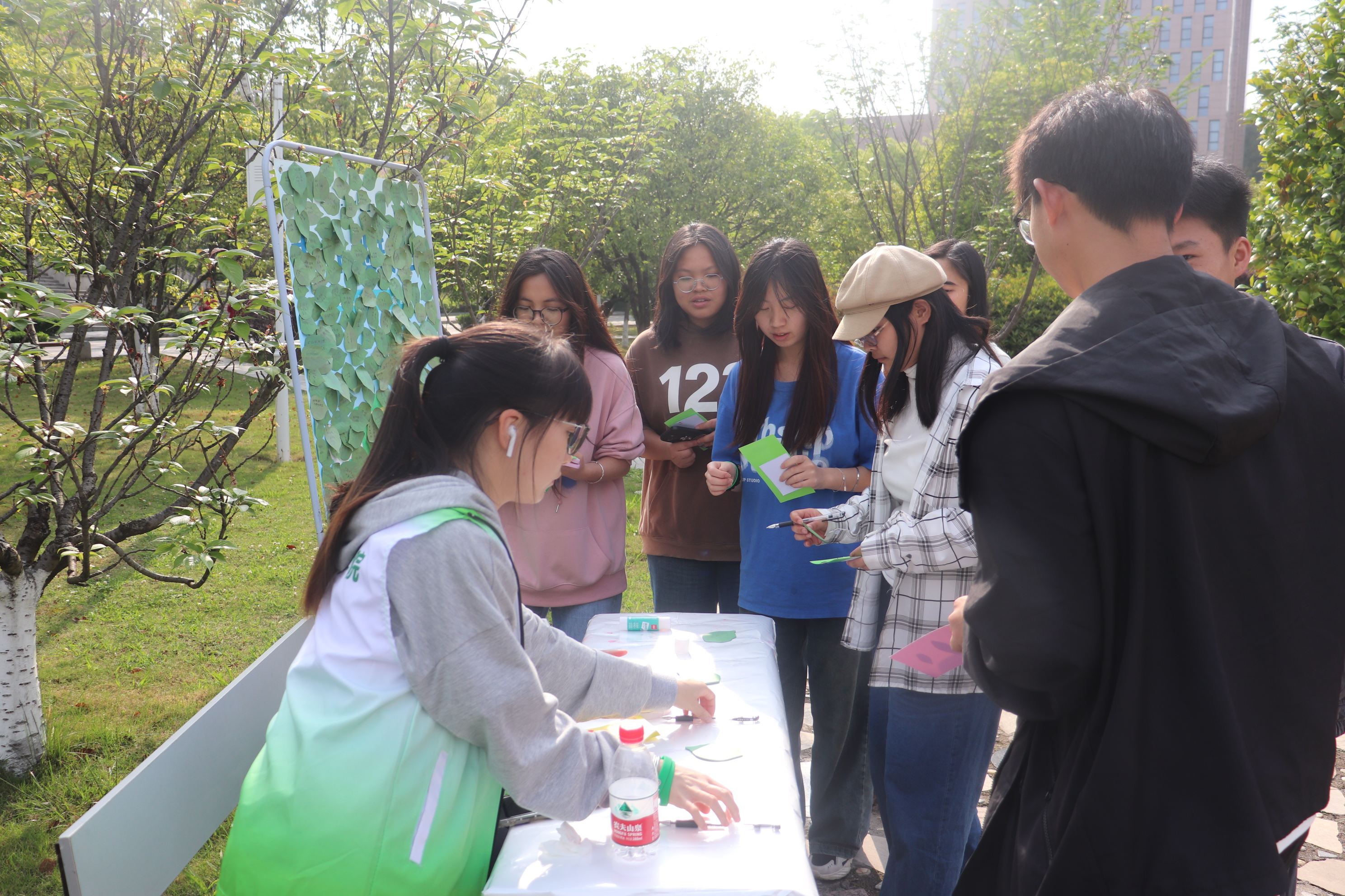活动当天,现场志愿者们积极宣传“珍爱地球,人与自然和谐共生”的理念,通过对“手工DTY,创意作品”和“神笔马良”手抄报评选活动获奖作品的介绍,号召集团师生关心地球,保护我们共同的家园。本次活动还设置了“绿色出行,低碳打卡”闯关互动游戏环节,参与的师生要通过完成分布在校园五处地点的低碳任务,收集印章,践行绿色低碳生活方式。