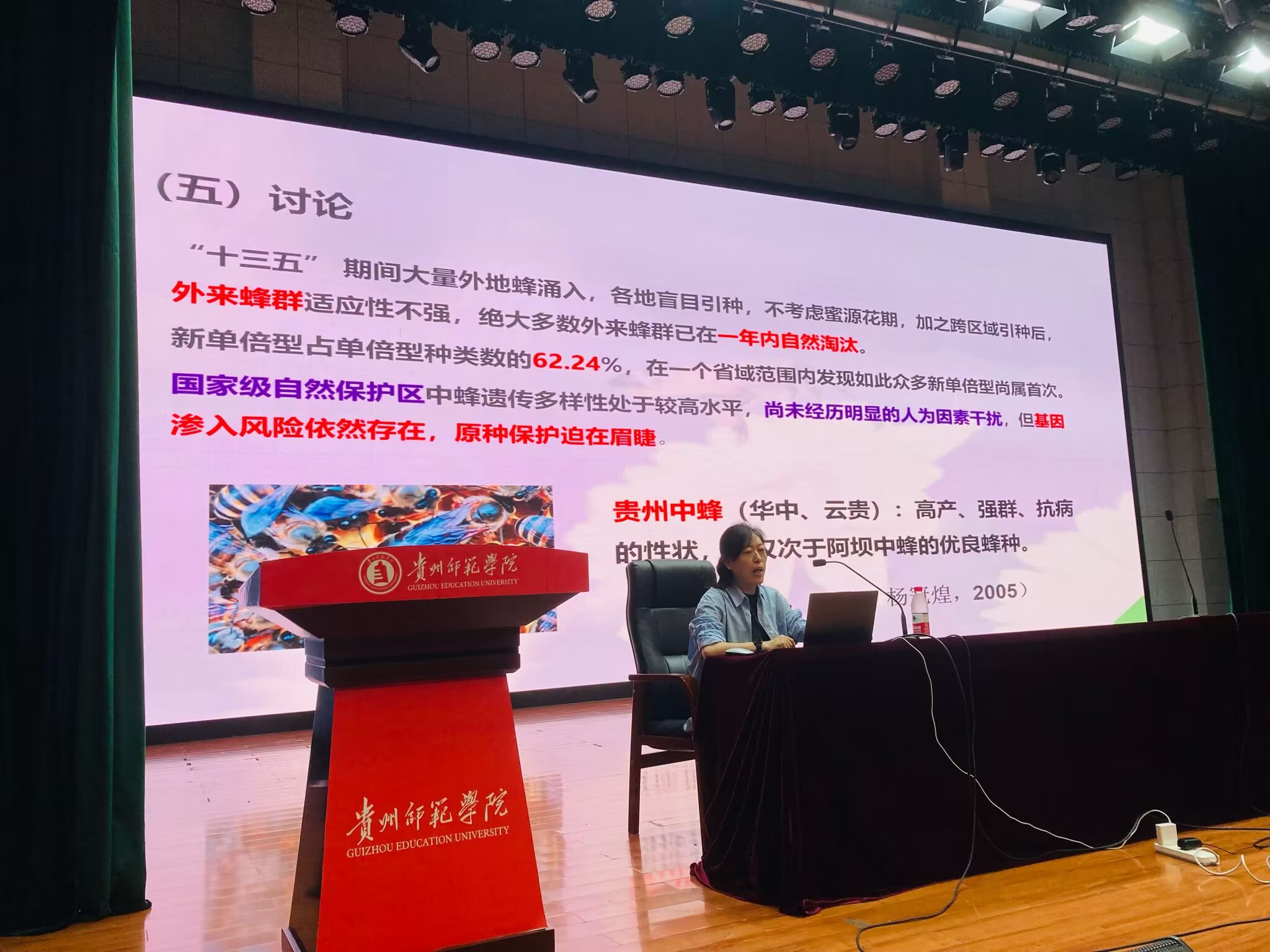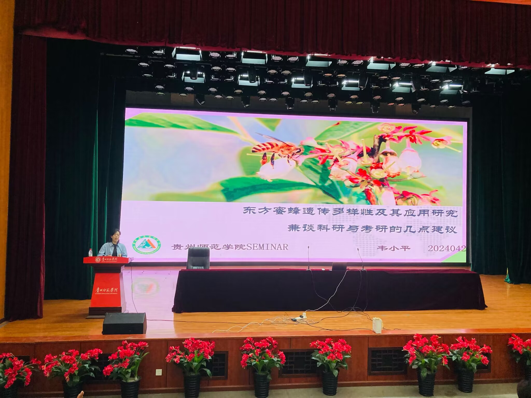 下午,公司邀请到贵州省农业科公司现代农业发展研究所,副所长、国家现代蜂产业技术体系综合试验站站长、贵州省畜牧标准委员会委员韦小平研究员在逸夫楼演播厅开展“东方蜜蜂遗传多样性在特色农业产业中的应用研究”的专题讲座。韦小平通过深入浅出对贵州蜂产业的讲解,让同学们拓宽了绿水青山转化金山银山的实现路径,更加坚定了要用所学的专业知识更好的服务乡村振兴,助力家乡产业发展。