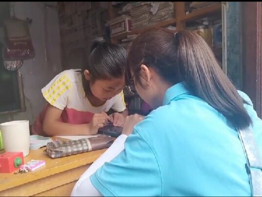 到达新添寨后,服务队首先在街道上邀请小朋友进行普通话测试,使小朋友们对自己的普通话水平有初步的了解,方便小朋友在今后提高自己的普通话水平。之后,服务队的同学给小朋友发放普通话宣传小册子,询问他们的认字情况,同时教授他们学习部分字词。在这个过程中,充分调动孩子们学习普通话的积极性,