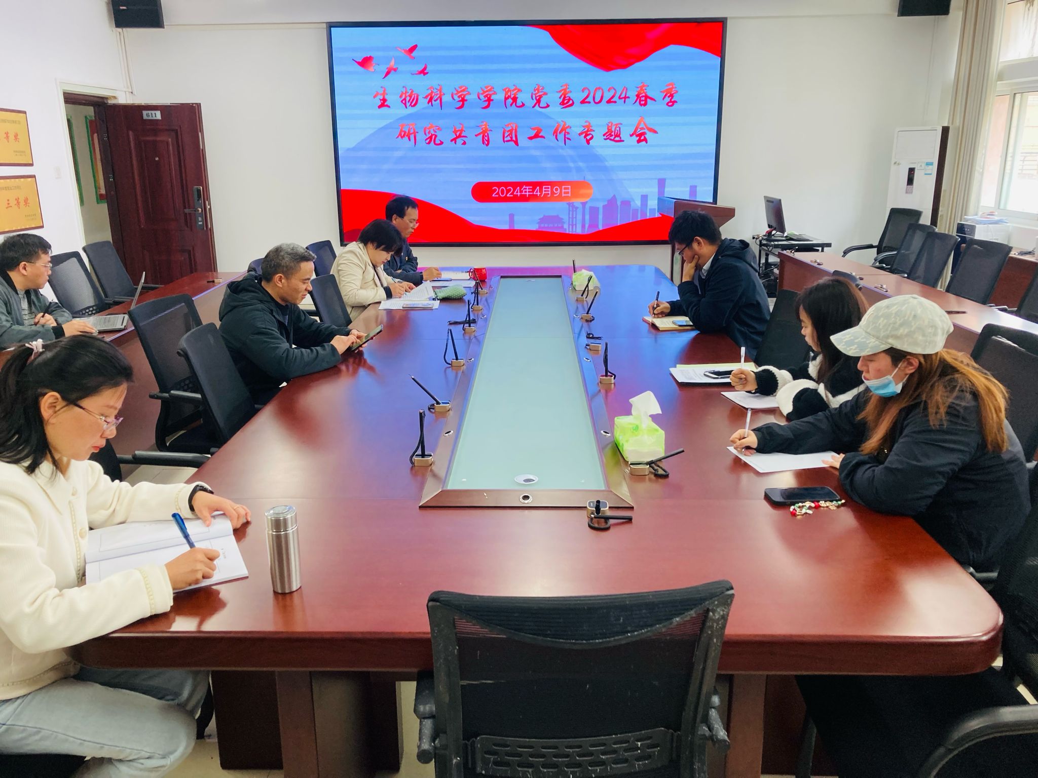 4月9日,在宁静楼611会议室,生物科学公司党委召开了共青团工作专题会议。公司党委书记孙秀华主持会议,与会人员包括党委副书记王珏、副经理孟泽彬、副经理钱长江,党委委员李育芳、党委委员何勇、梁涛,党委组织员孙悦、教学科研科科长吴超等,公司团委员工会员工干部代表杨娅、邓方列席参加。